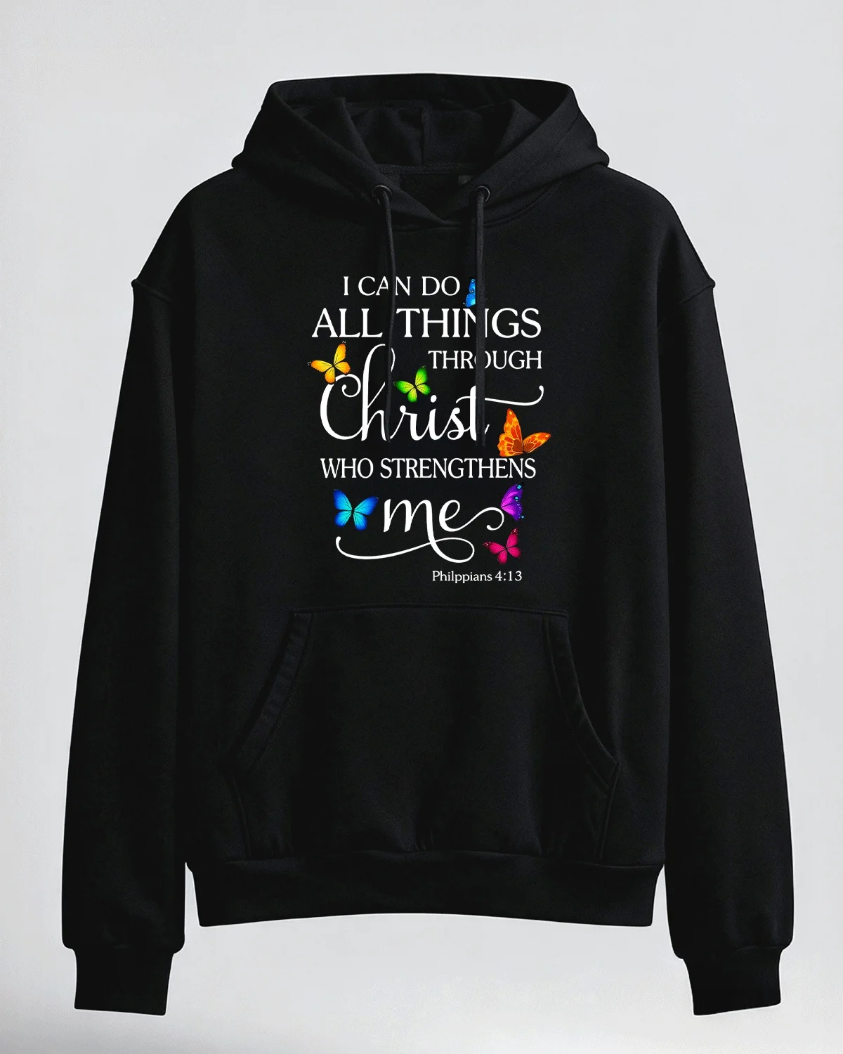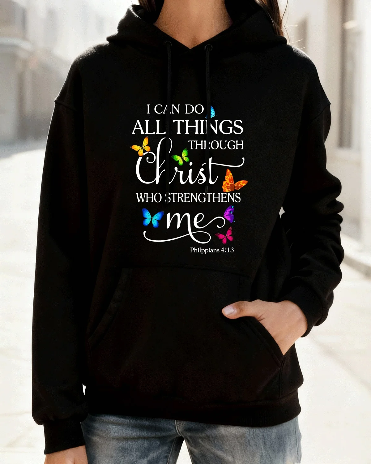 I Can Do All Things Through Christ Cozy Cotton Graphic Hoodie-Casual Vintage,Long Sleeves,Soft Fabric,Comfortable Fit