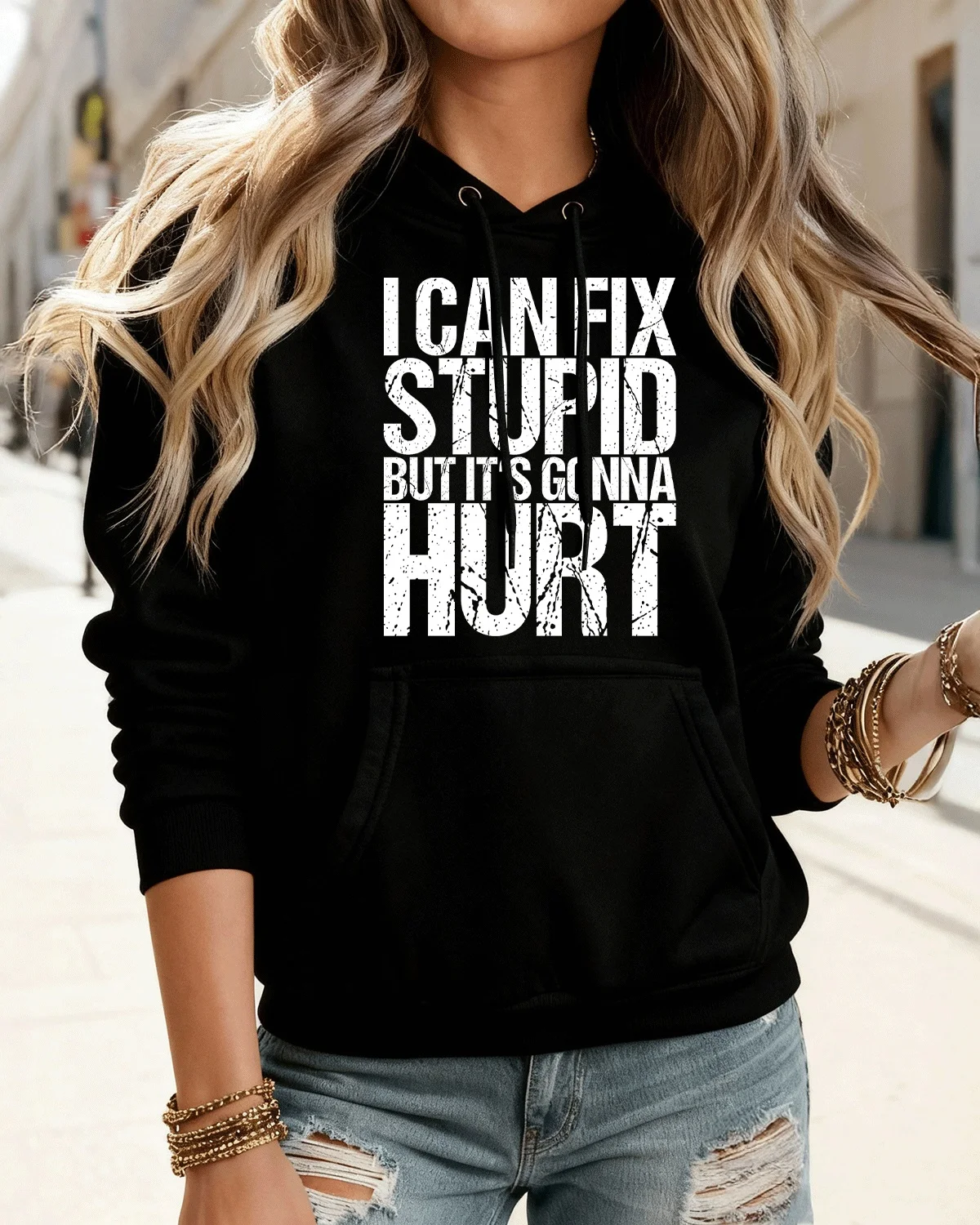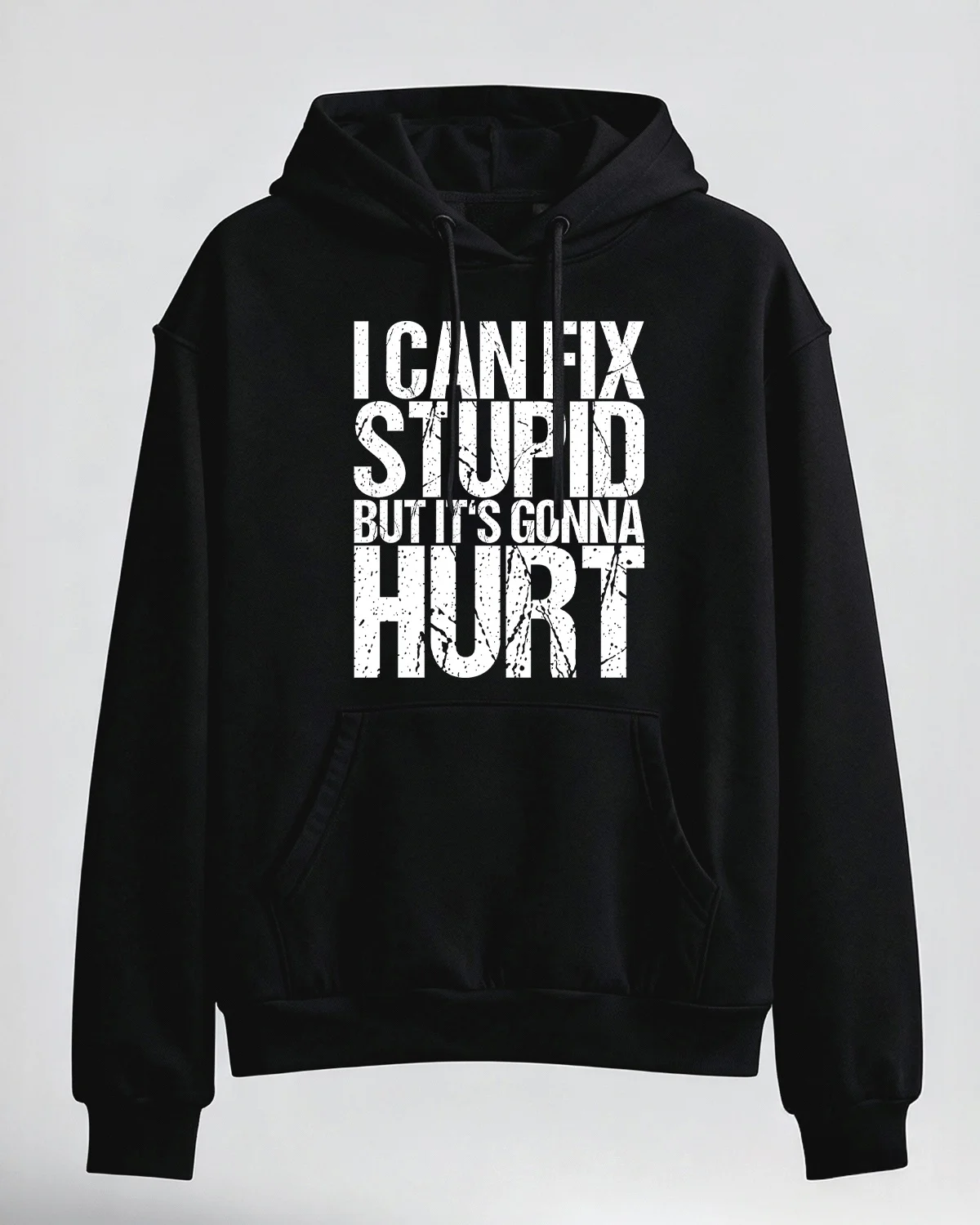 I Can Fix Stupid But It's Gonna Hurt Cozy Cotton Graphic Hoodie-Casual Funny,Long Sleeves,Soft Fabric,Comfortable Fit