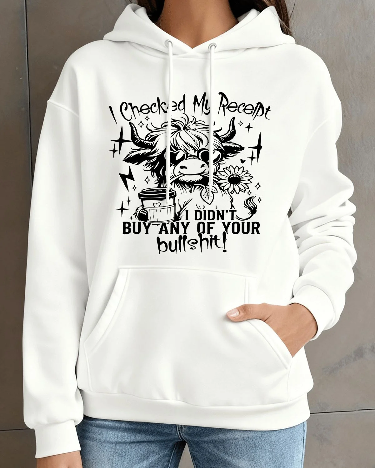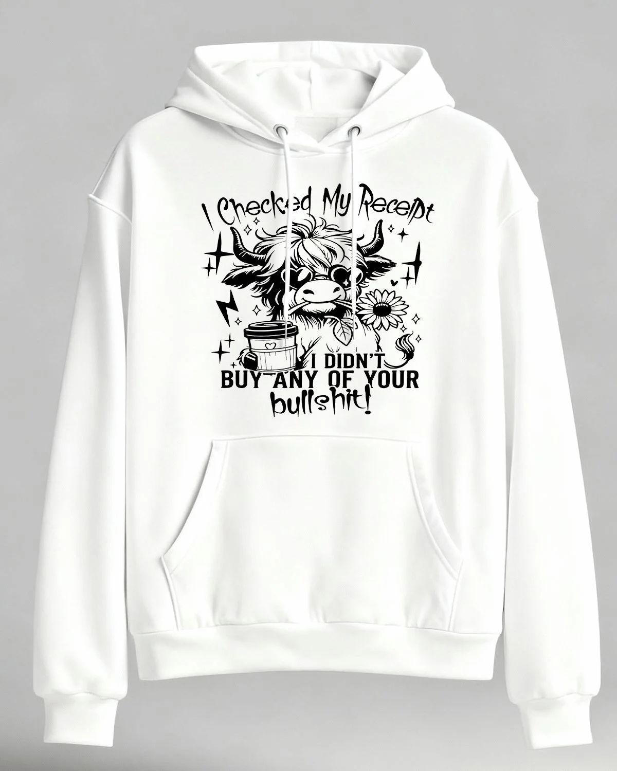 I Checked My Receipt Cow Coffee Cozy Graphic Hoodie for Men and Women - Casual Funny, Long Sleeve, Soft Fabric, Comfortable Fit
