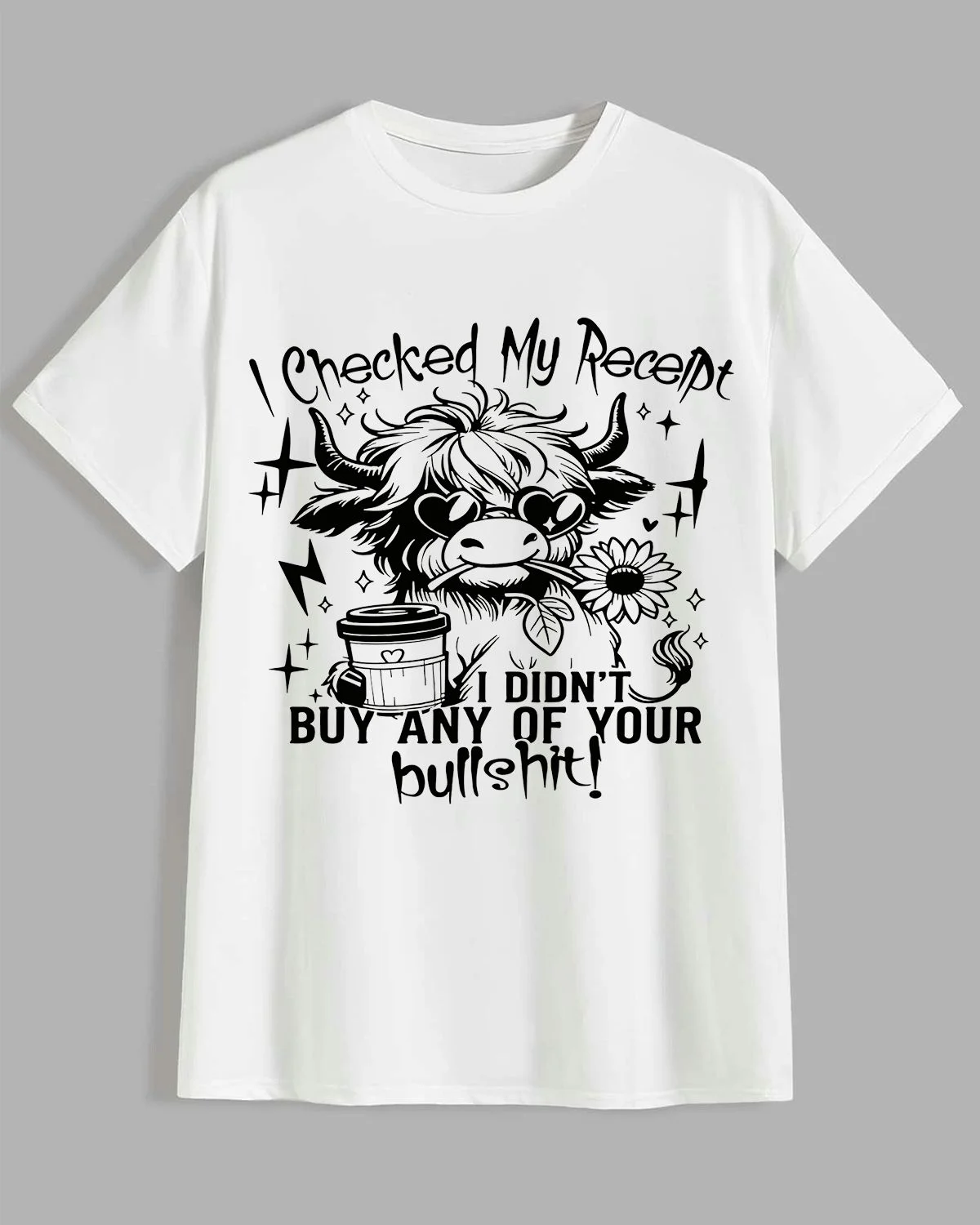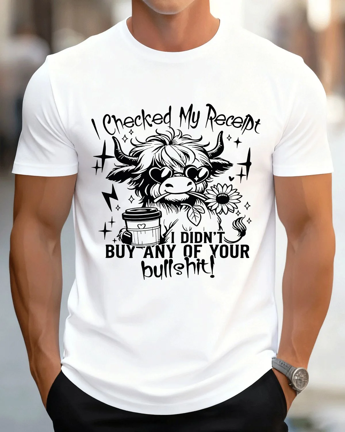 I Checked My Receipt Cow Coffee Summer Cotton Graphic T Shirt - Casual Funny, Short Sleeve, Soft Fabric, Comfortable Fit