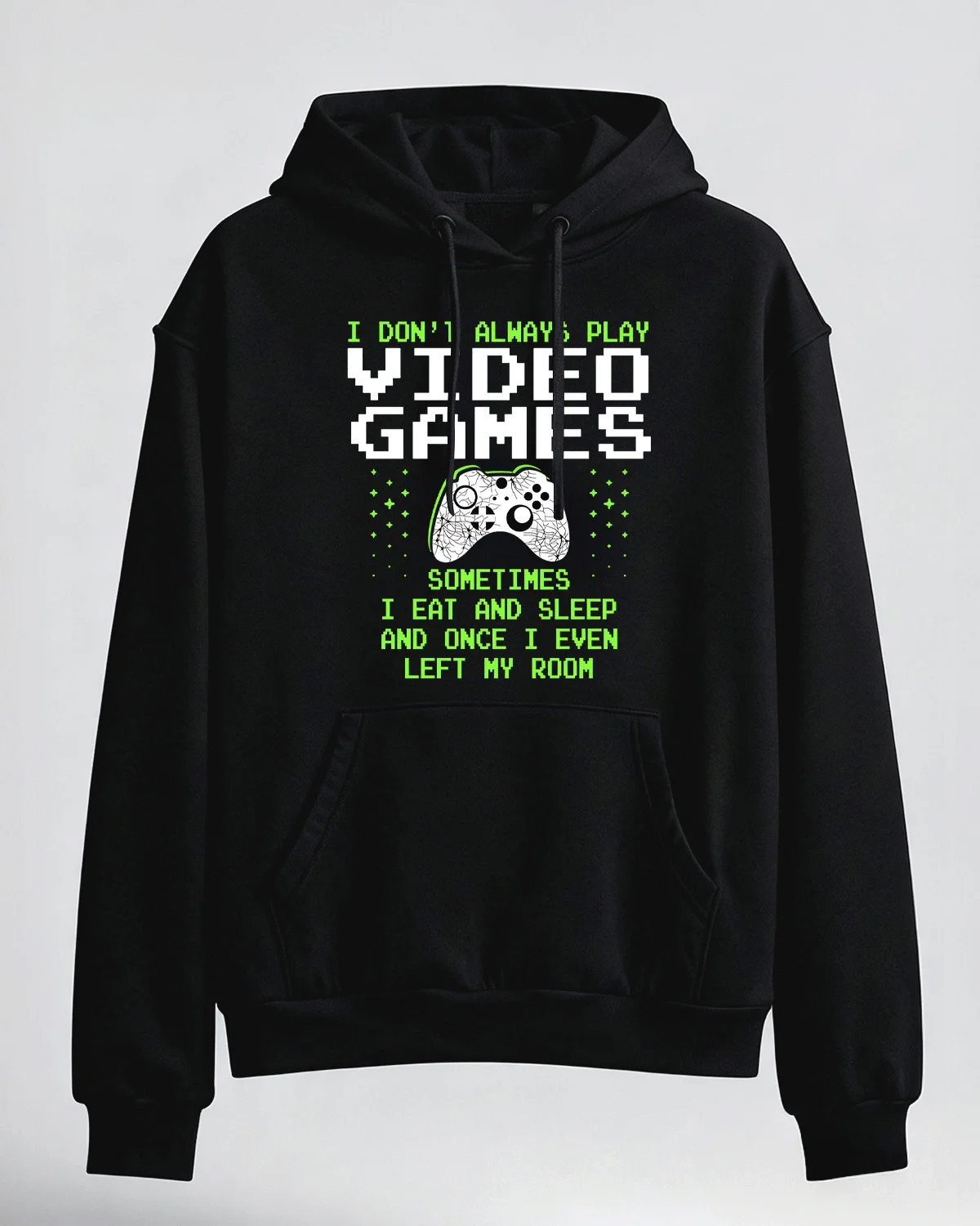 I Don't Always Play Video Games Cozy Cotton Graphic Hoodie-Casual Funny,Long Sleeves,Soft Fabric,Comfortable Fit