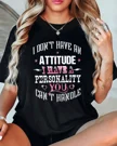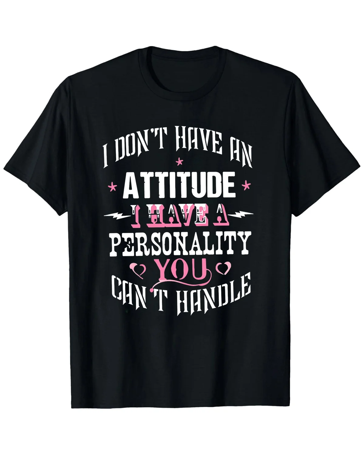 I Don't Have An Attitude I Have A Personality You Can't Handle Summer Cotton Graphic T Shirt-Casual Funny,Short Sleeve,Soft Fabric,Comfortable Fit