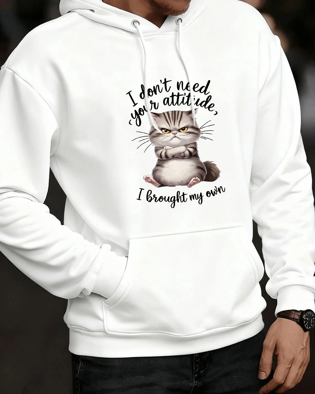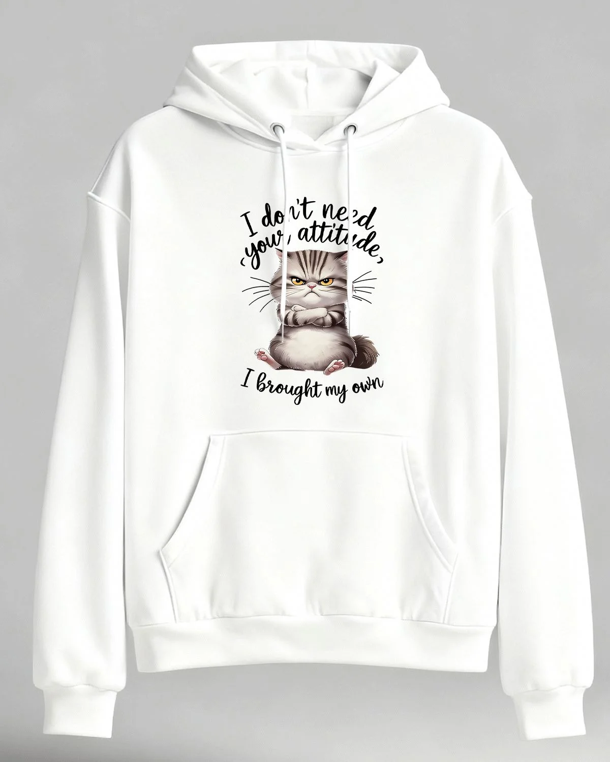I Don't Need Your Attitude Angry Cat Cozy Cotton Graphic Hoodie with Pocket-Casual Funny,Long Sleeve,Soft Fabric,Comfortable Fit