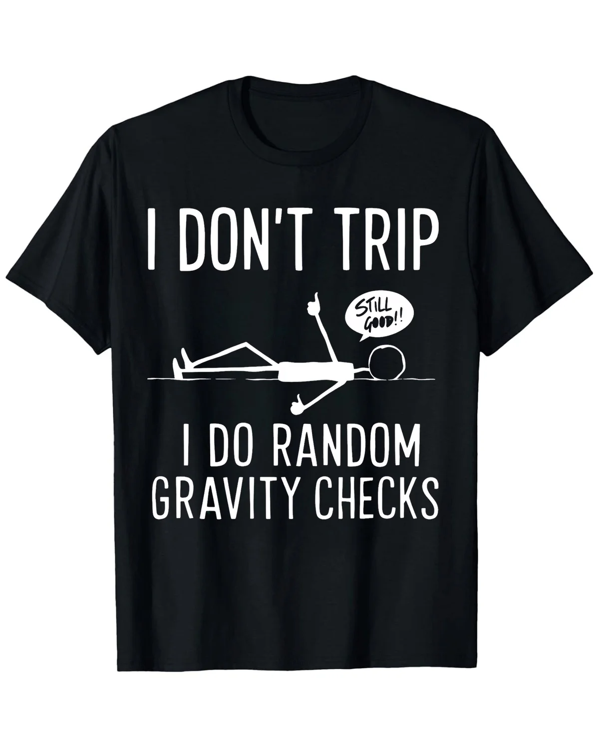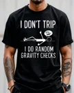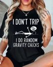 I Don't Trip I Do Random Gravity Checks Summer Cotton Graphic T Shirt-Casual Funny,Short Sleeve,Soft Fabric,Comfortable Fit