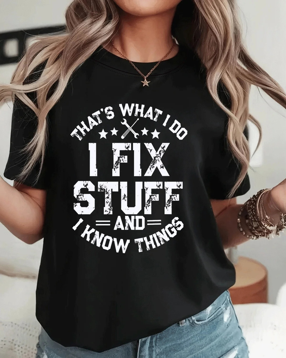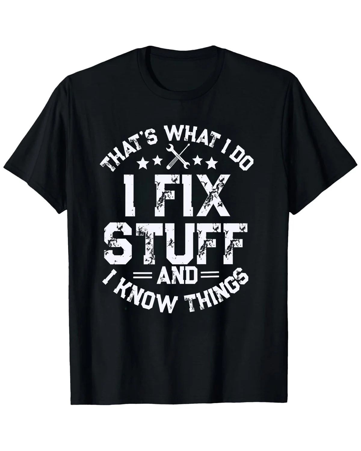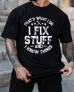 I Fix Stuff And I Know Things Summer Cotton Graphic T Shirt-Casual Vintage,Short Sleeve,Soft Fabric,Comfortable Fit