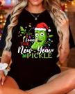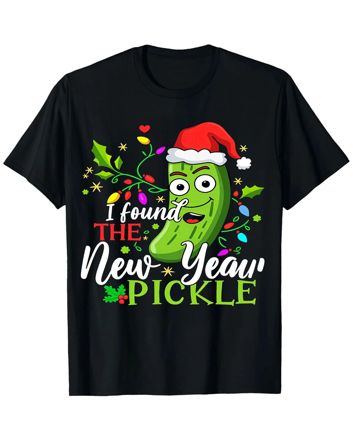 I Found the New Year Pickle with Santa Hat Summer Cotton Graphic T Shirt - Funny Casual, Short Sleeve, Soft Fabric, Comfortable Fit