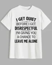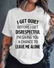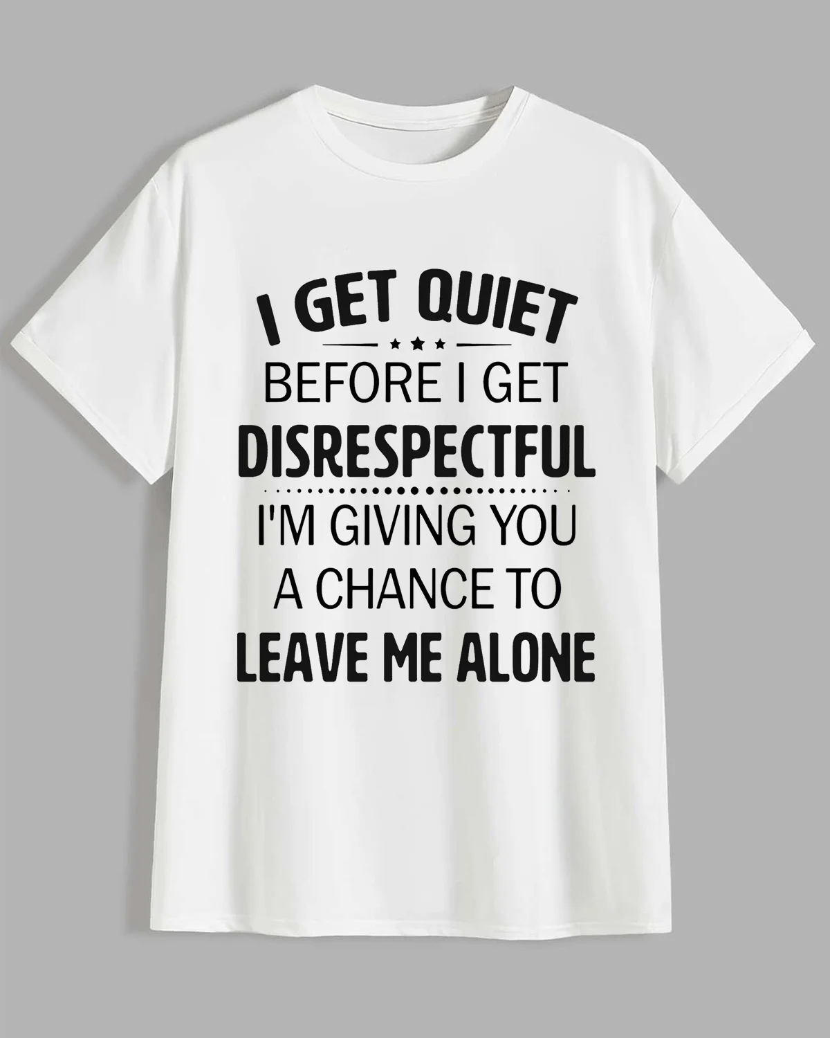 I Get Quiet Before I Get Disrespectful Summer Cotton Graphic T Shirt-Casual Cool,Short Sleeve,Soft Fabric,Comfortable Fit
