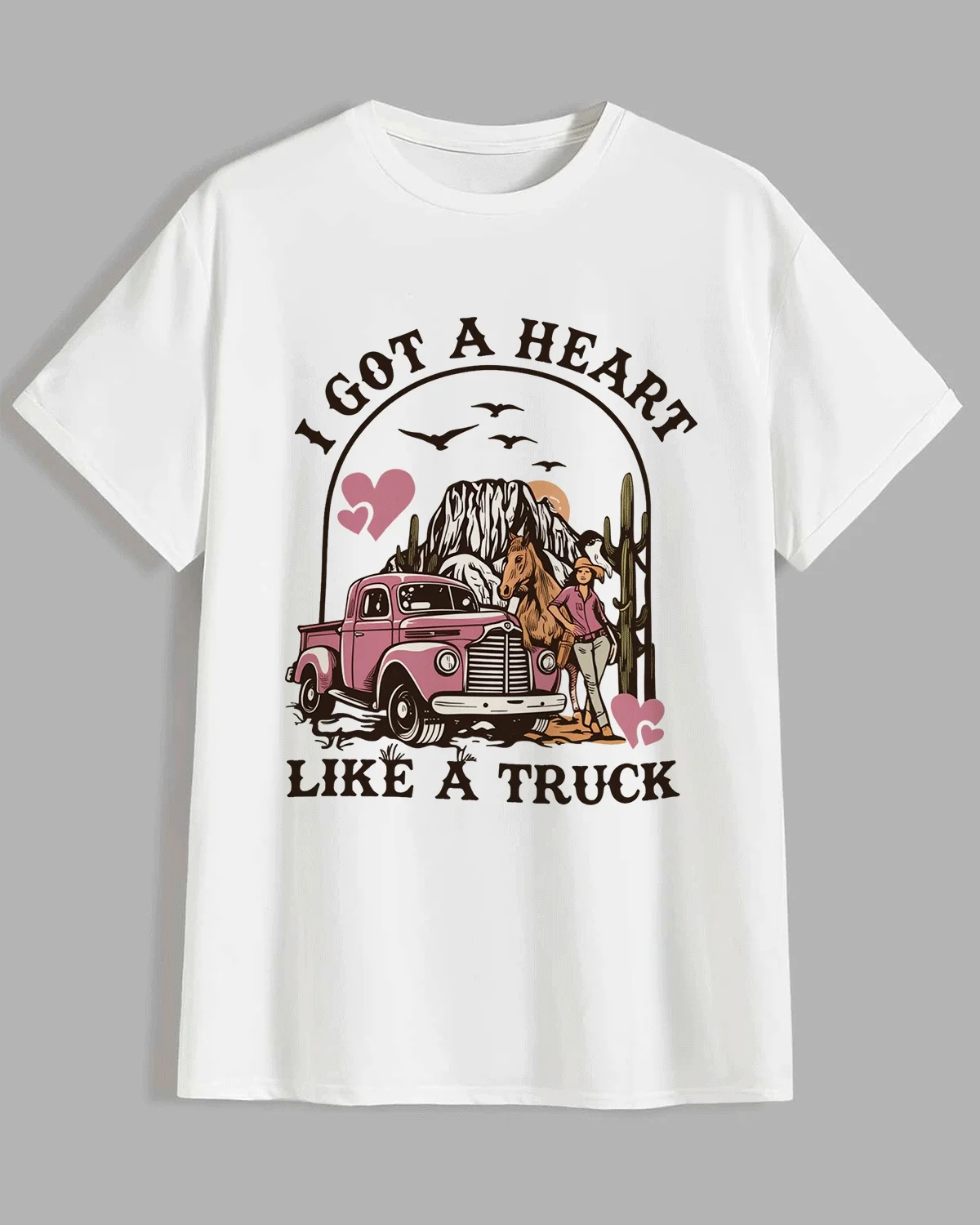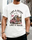 I Got a Heart Like a Truck Summer Cotton Graphic T Shirt-Vintage Retro,Short Sleeve,Soft Fabric,Comfortable Fit