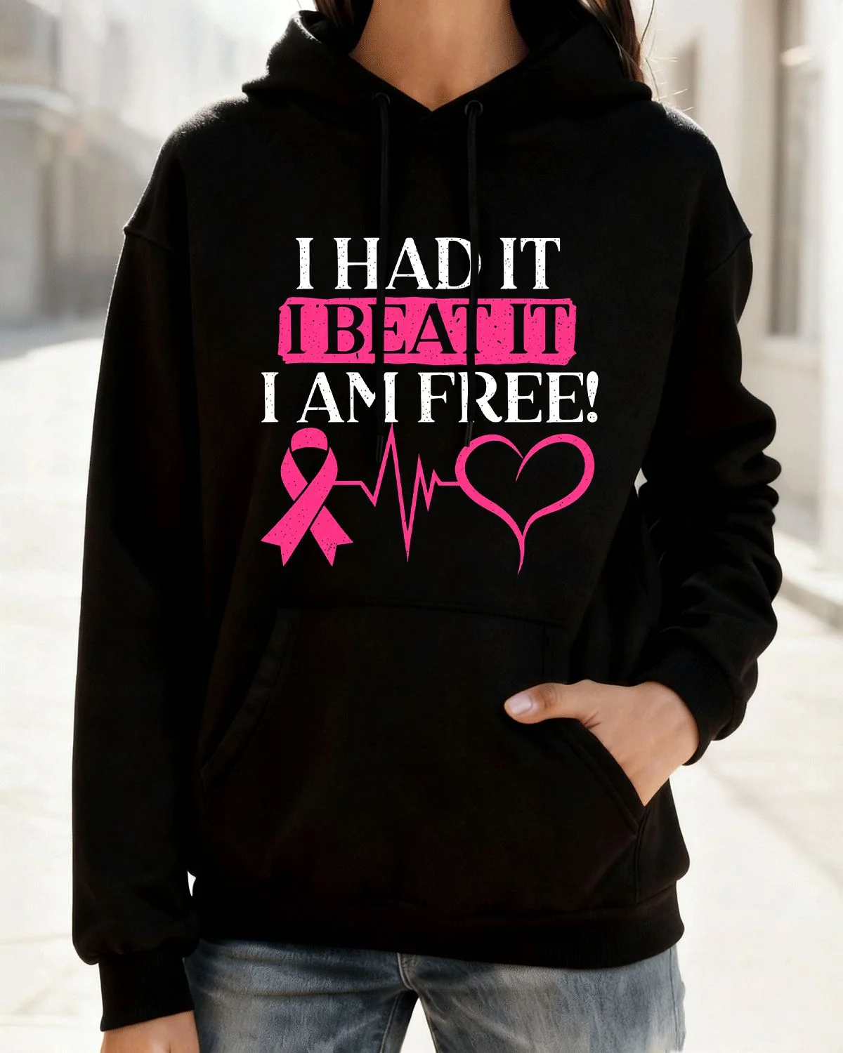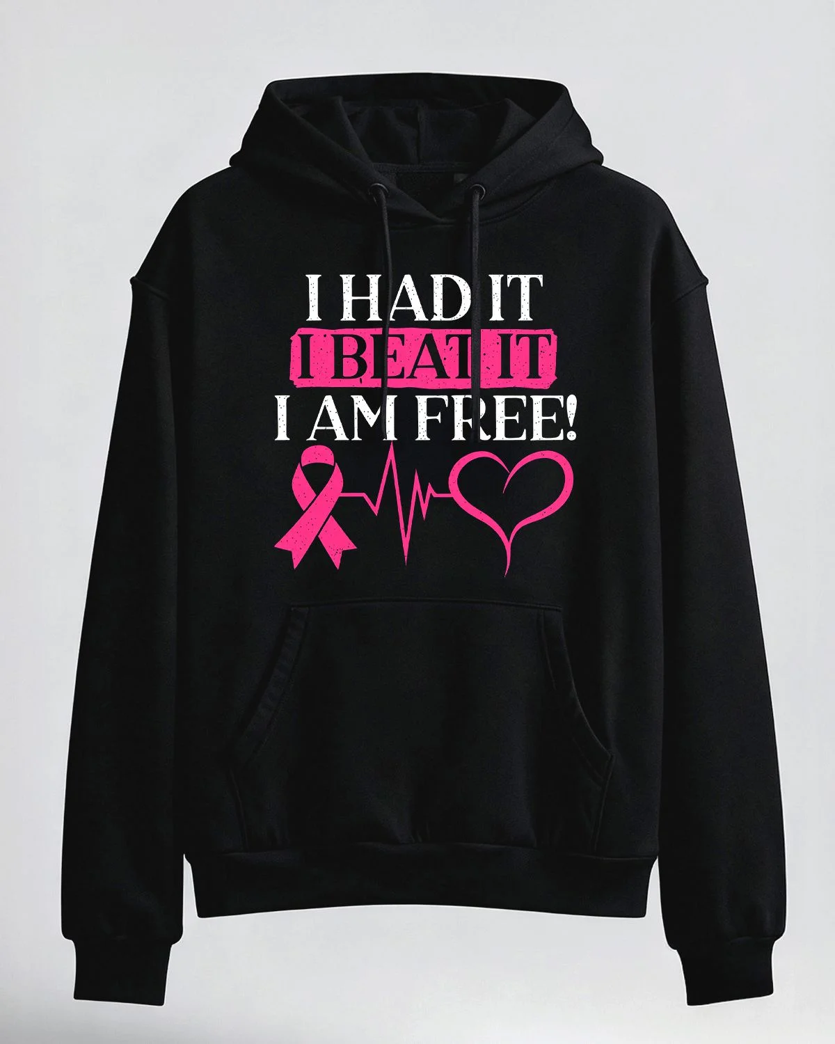 I Had It I Beat It I Am Free Pink Ribbon Summer Cozy Graphic Hoodie-Casual Vintage,Long Sleeve,Soft Fabric,Comfortable Fit