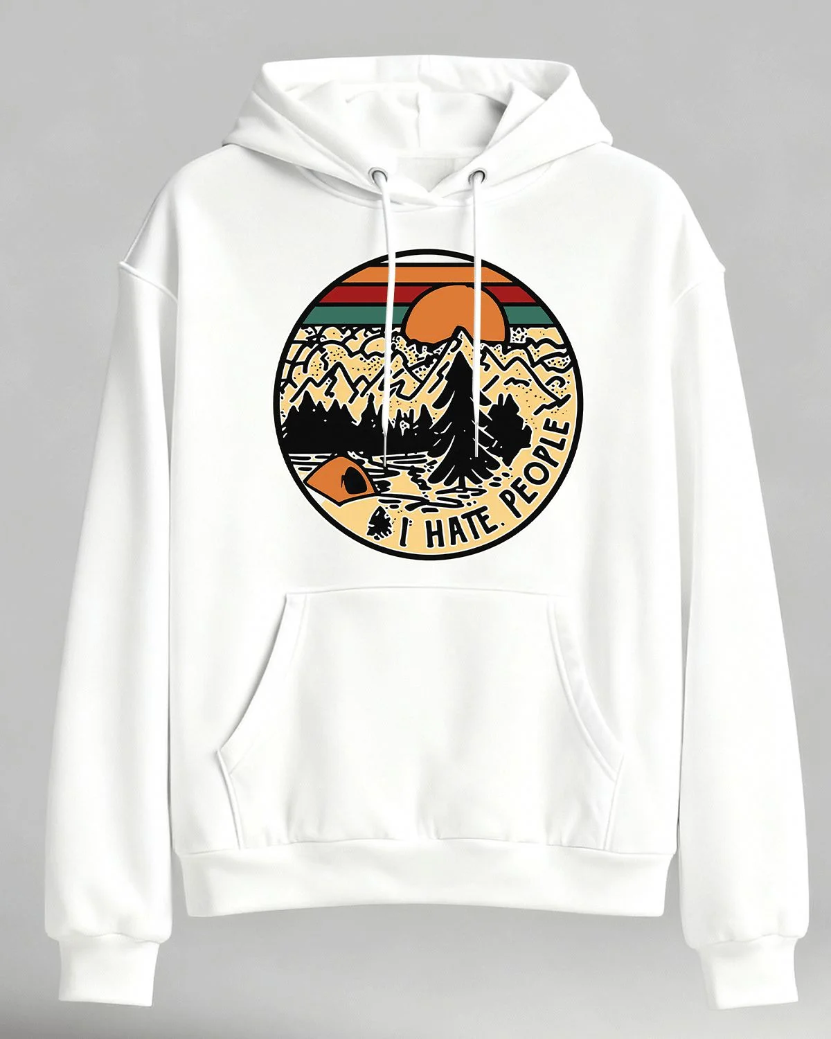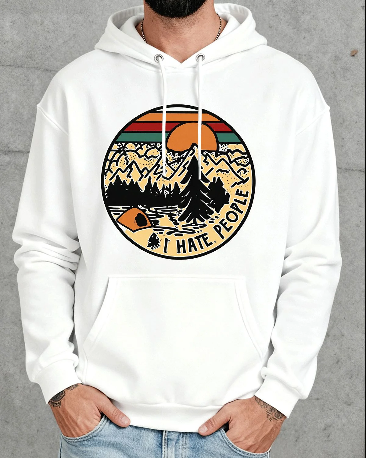 I Hate People Camping Sunset Cozy Graphic Hoodie for Men and Women - Casual Vintage, Long Sleeve, Soft Fabric, Comfortable Fit
