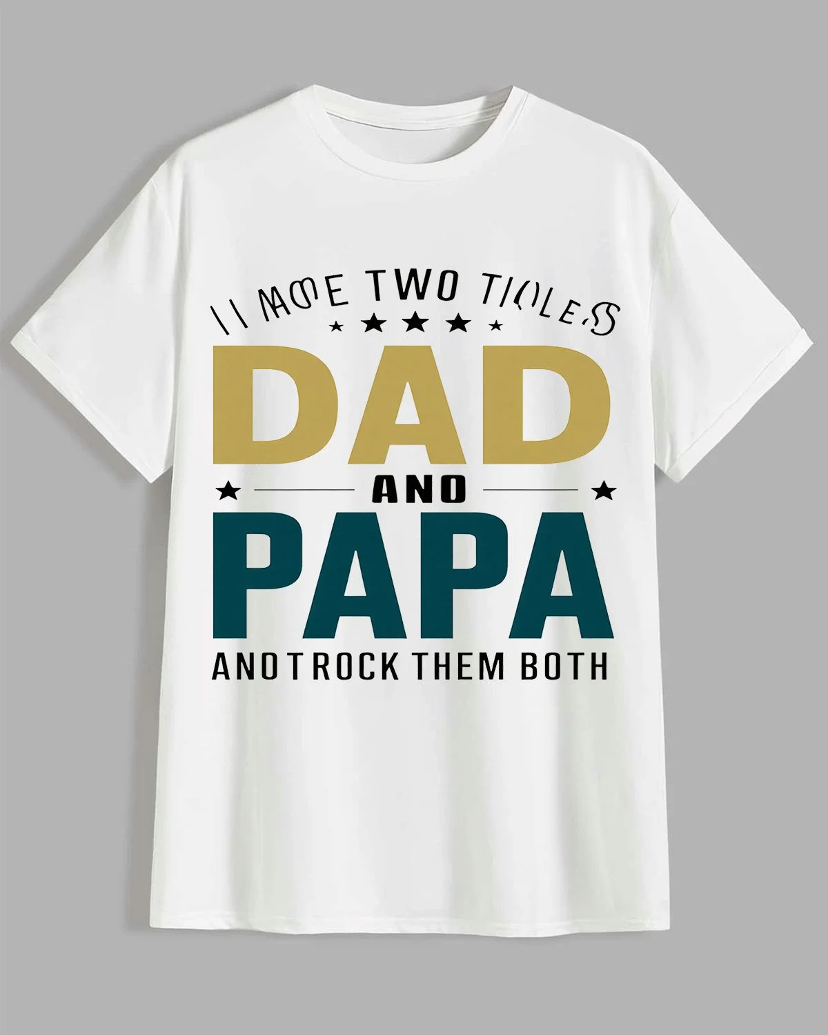 I Have Two Titles Dad and Papa Summer Cotton Graphic T Shirt - Casual Vintage, Short Sleeve, Soft Fabric, Comfortable Fit