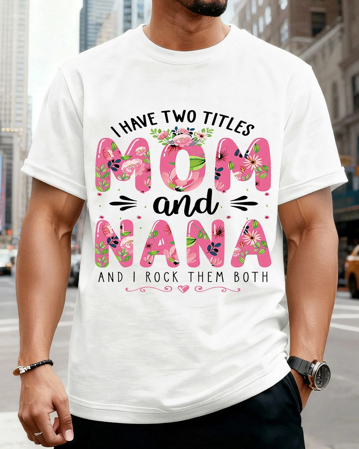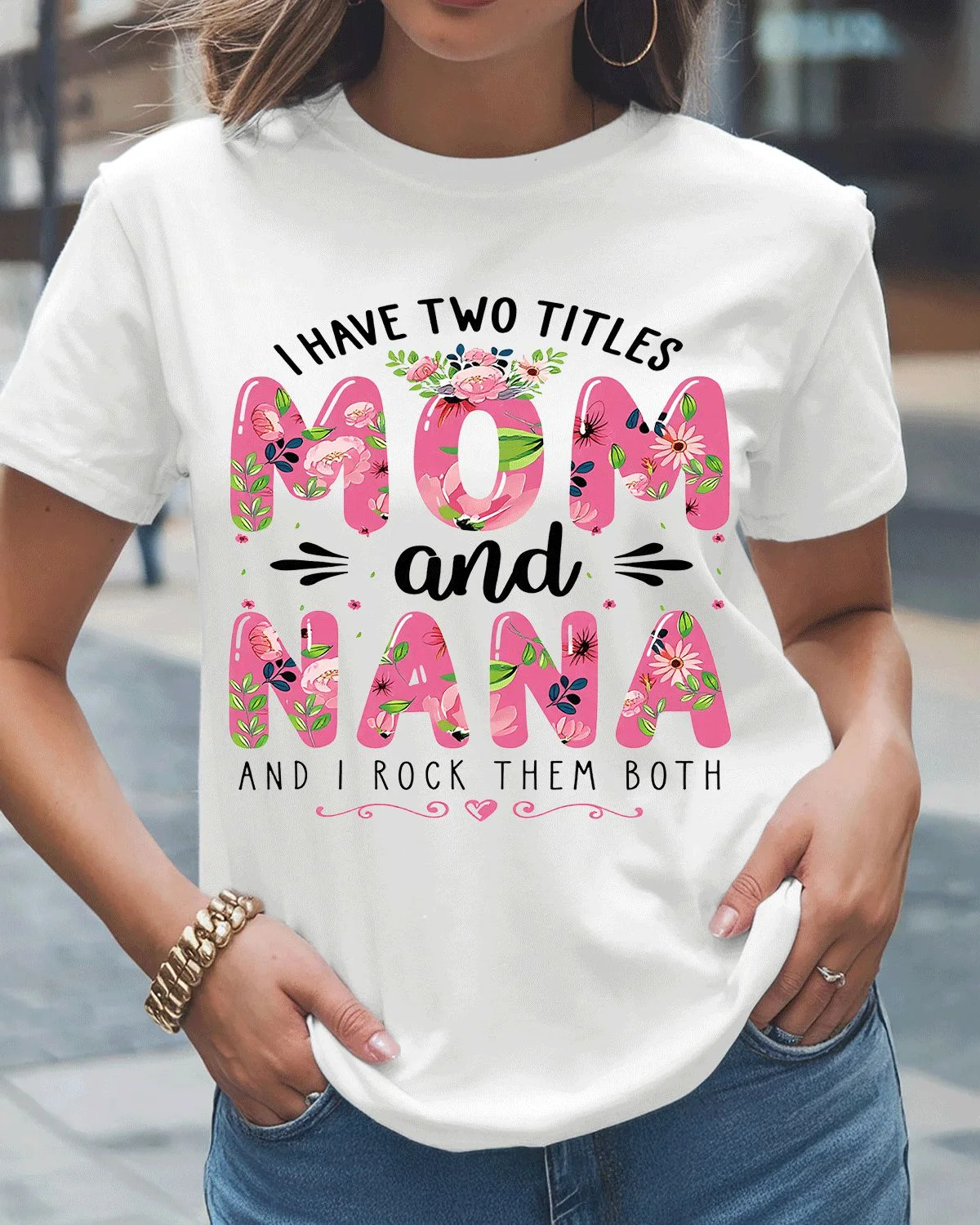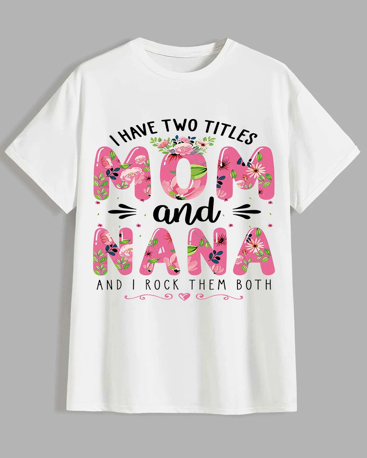 I Have Two Titles Mom and Nana Summer Cotton Graphic T Shirt - Casual Vintage, Short Sleeve, Soft Fabric, Comfortable Fit