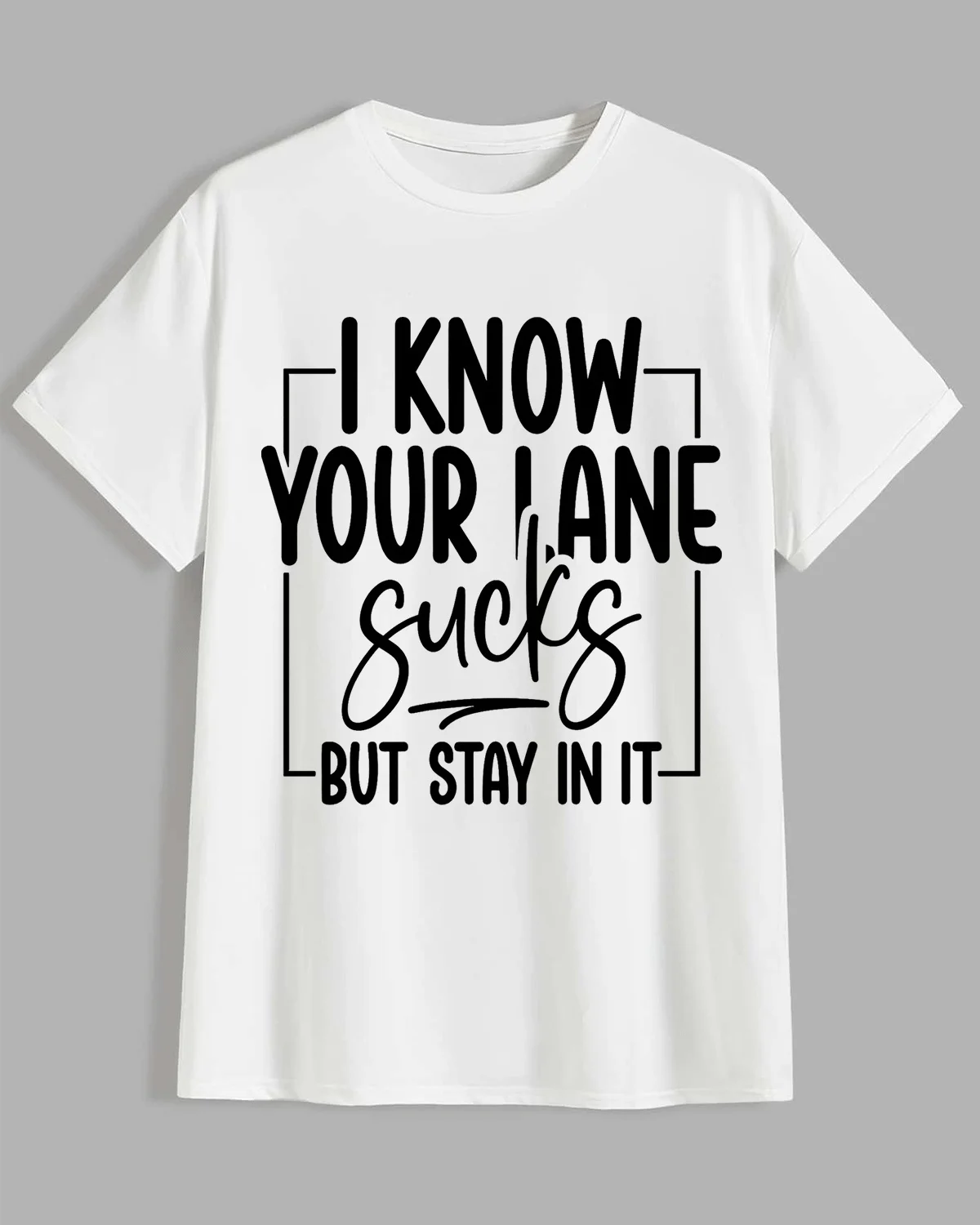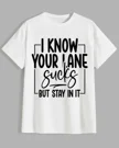 I Know Your Lane Sucks But Stay In It Summer Cotton Graphic T Shirt-Casual Funny,Short Sleeve,Soft Fabric,Comfortable Fit