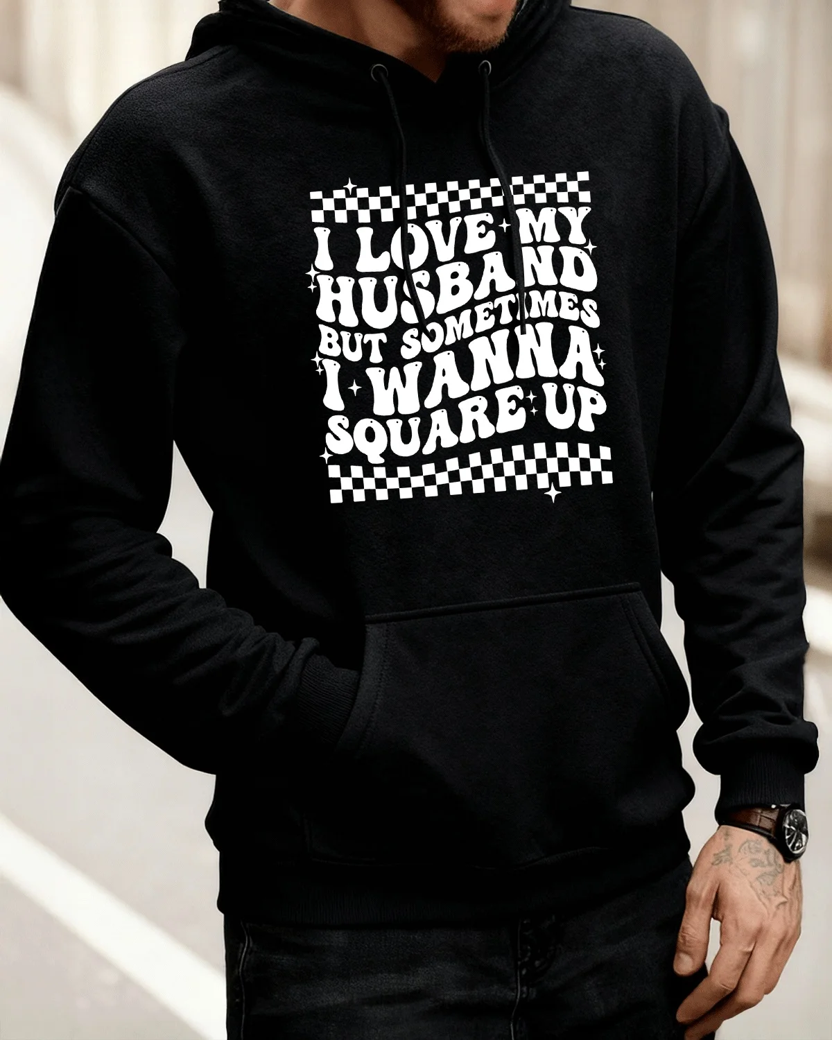 I Love My Husband Funny Cozy Cotton Graphic Hoodie-Casual Retro,Long Sleeves,Soft Fabric,Comfortable Fit