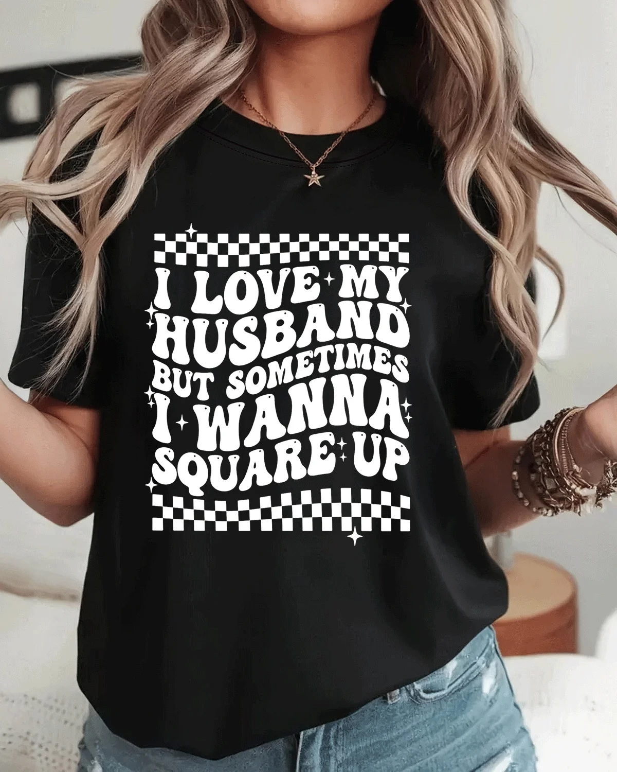 I Love My Husband Funny Summer Cotton Graphic T Shirt-Casual Retro,Short Sleeve,Soft Fabric,Comfortable Fit