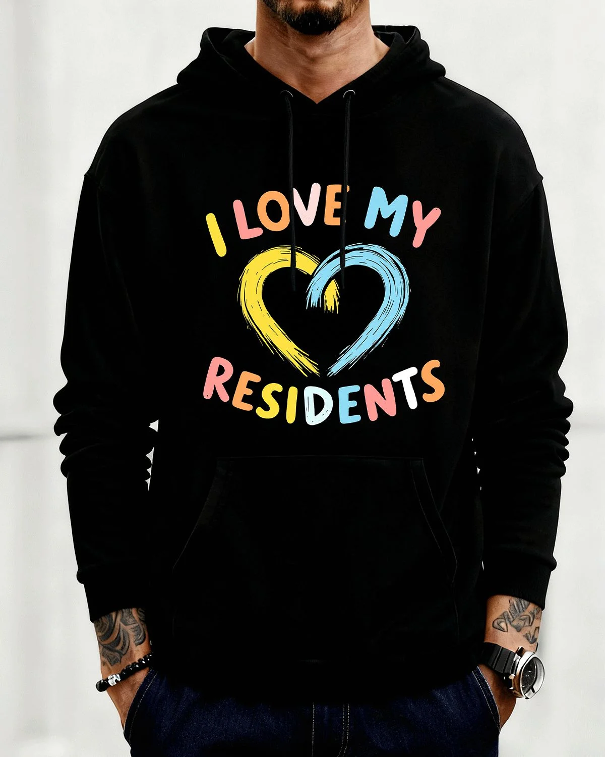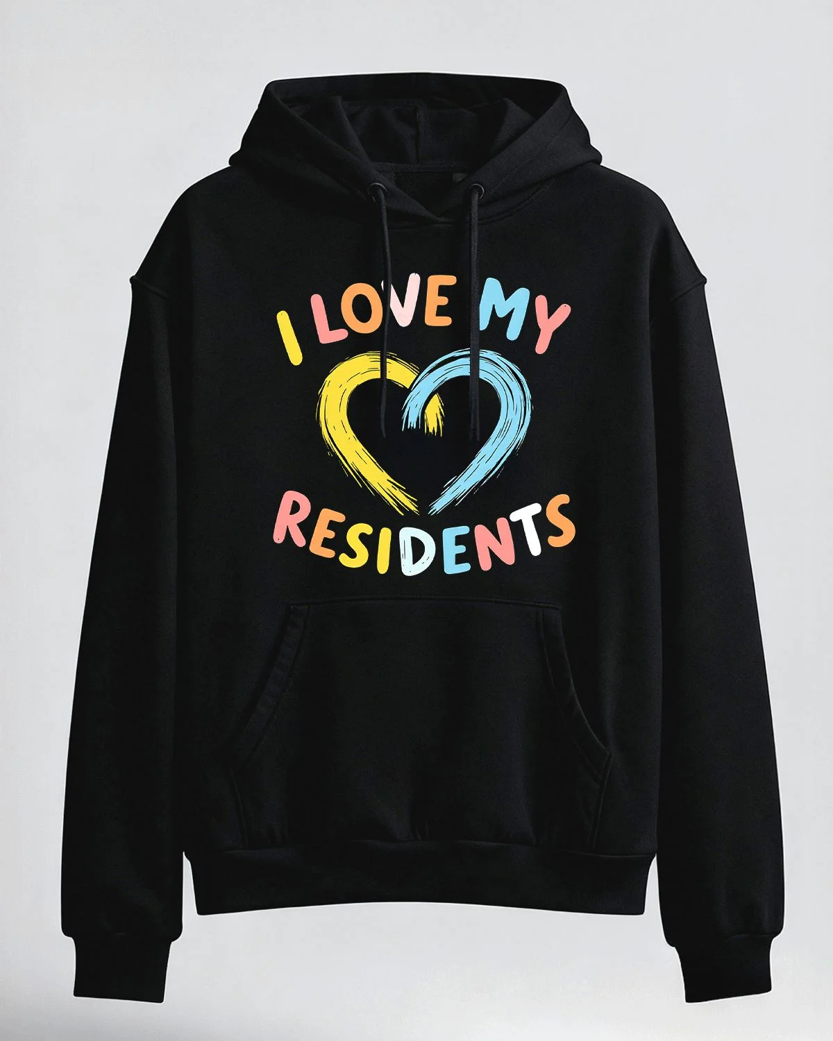 I Love My Residents Heart Summer Cozy Graphic Hoodie-Casual Artistic,Long Sleeve,Soft Fabric,Comfortable Fit