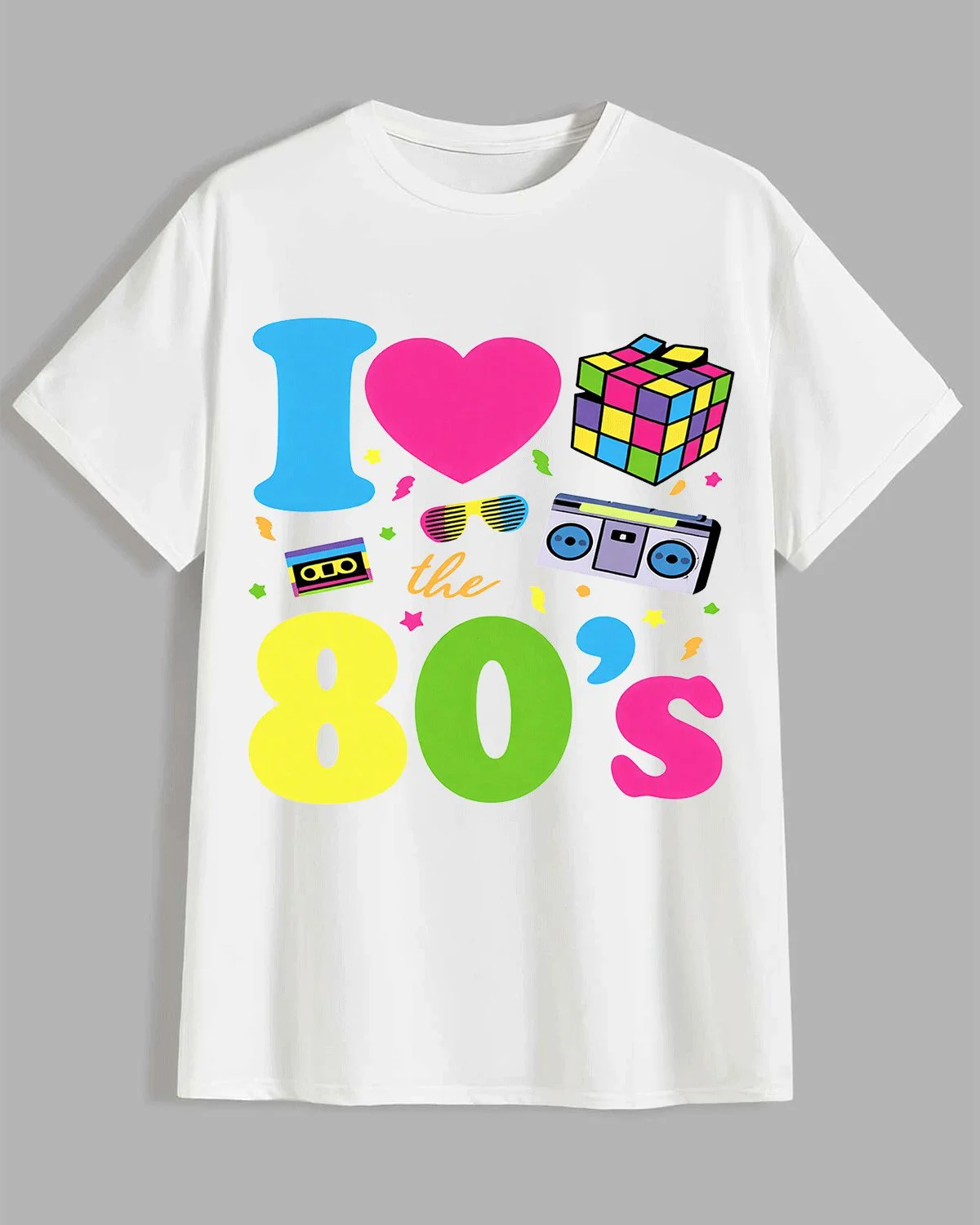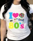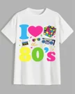 I Love the 80's Summer Cotton Graphic T Shirt - Retro Vintage, Short Sleeve, Soft Fabric, Comfortable Fit