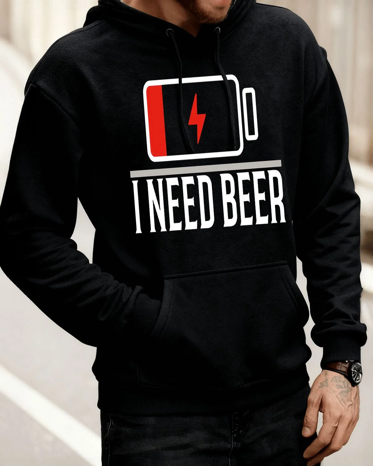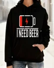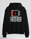 I Need Beer Low Battery Cozy Graphic Hoodie for Men and Women - Casual Funny, Long Sleeve, Soft Fabric, Comfortable Fit