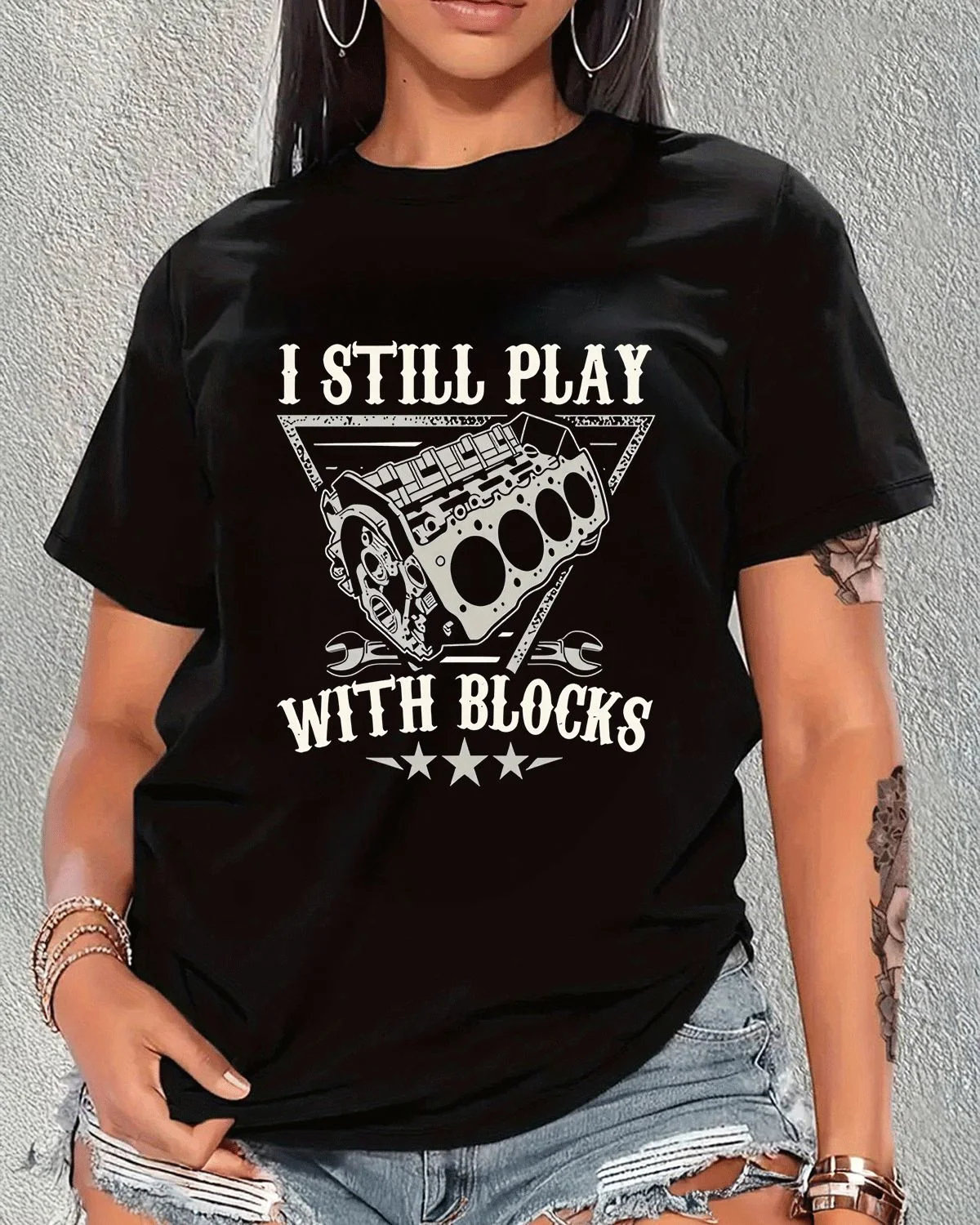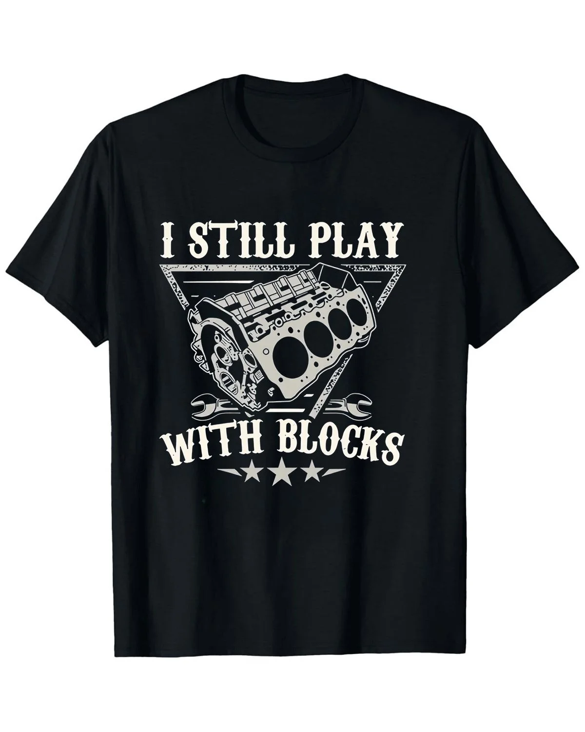 I Still Play With Engine Blocks Summer Cotton Graphic T Shirt - Casual Vintage,Short Sleeve,Soft Fabric,Comfortable Fit