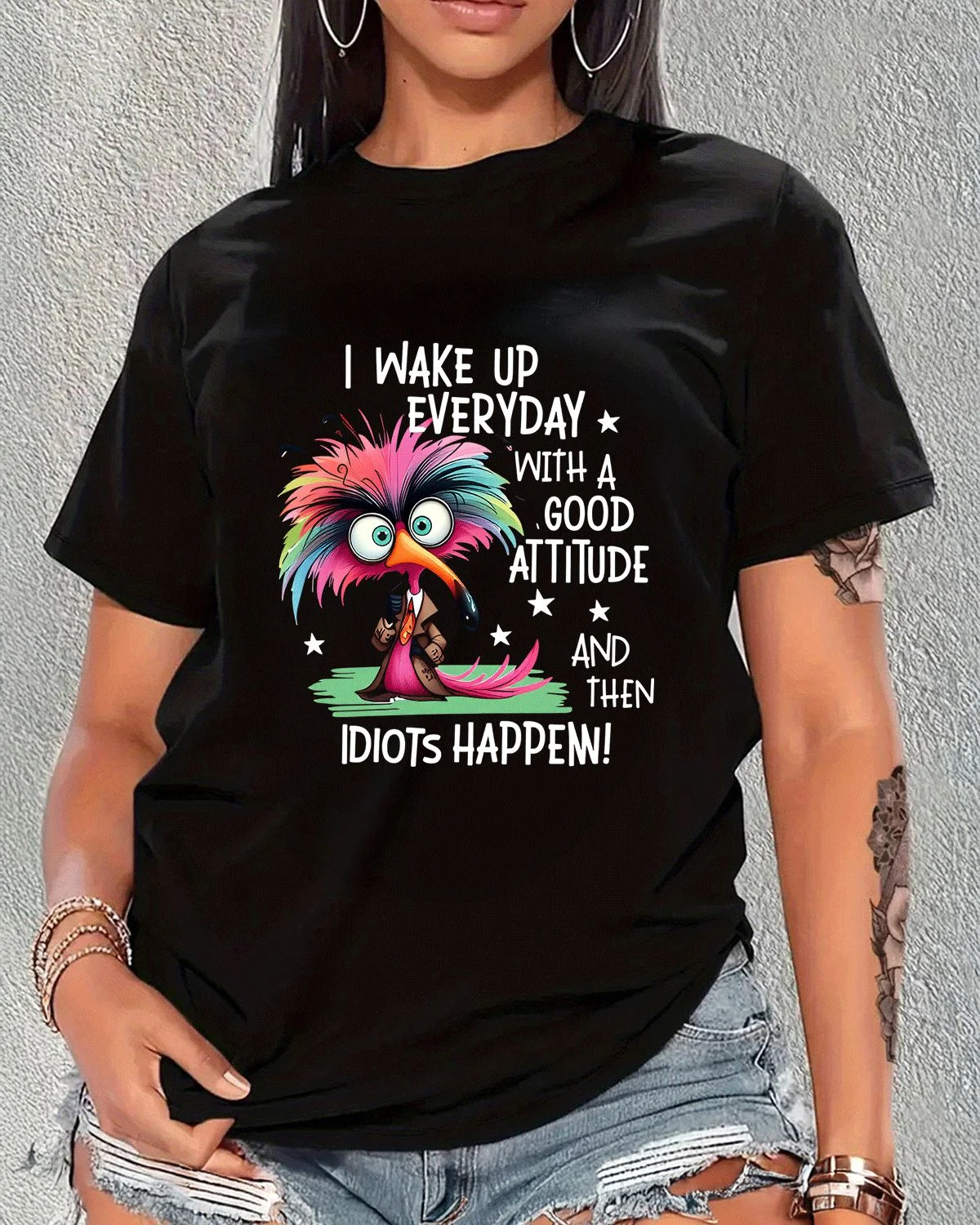 I Wake Up Everyday With A Good Attitude Summer Cotton Graphic T Shirt - Funny Casual,Short Sleeve,Soft Fabric,Comfortable Fit