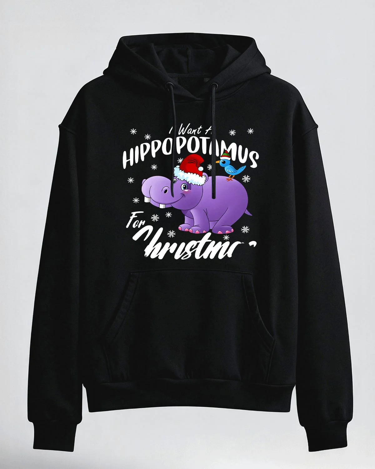 I Want a Hippopotamus for Christmas Cartoon Cozy Graphic Hoodie for Men and Women - Funny Casual, Long Sleeve, Soft Fabric, Comfortable Fit