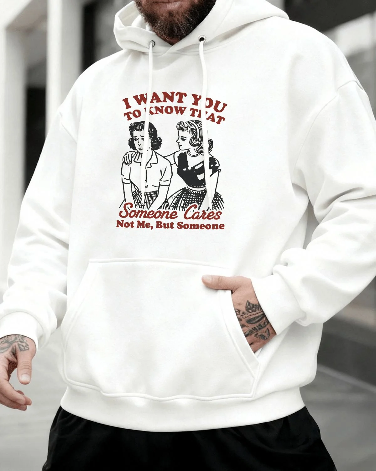 I Want You to Know Someone Cares Not Me Cozy Cotton Graphic Hoodie with Pocket-Casual Vintage,Long Sleeve,Soft Fabric,Comfortable Fit