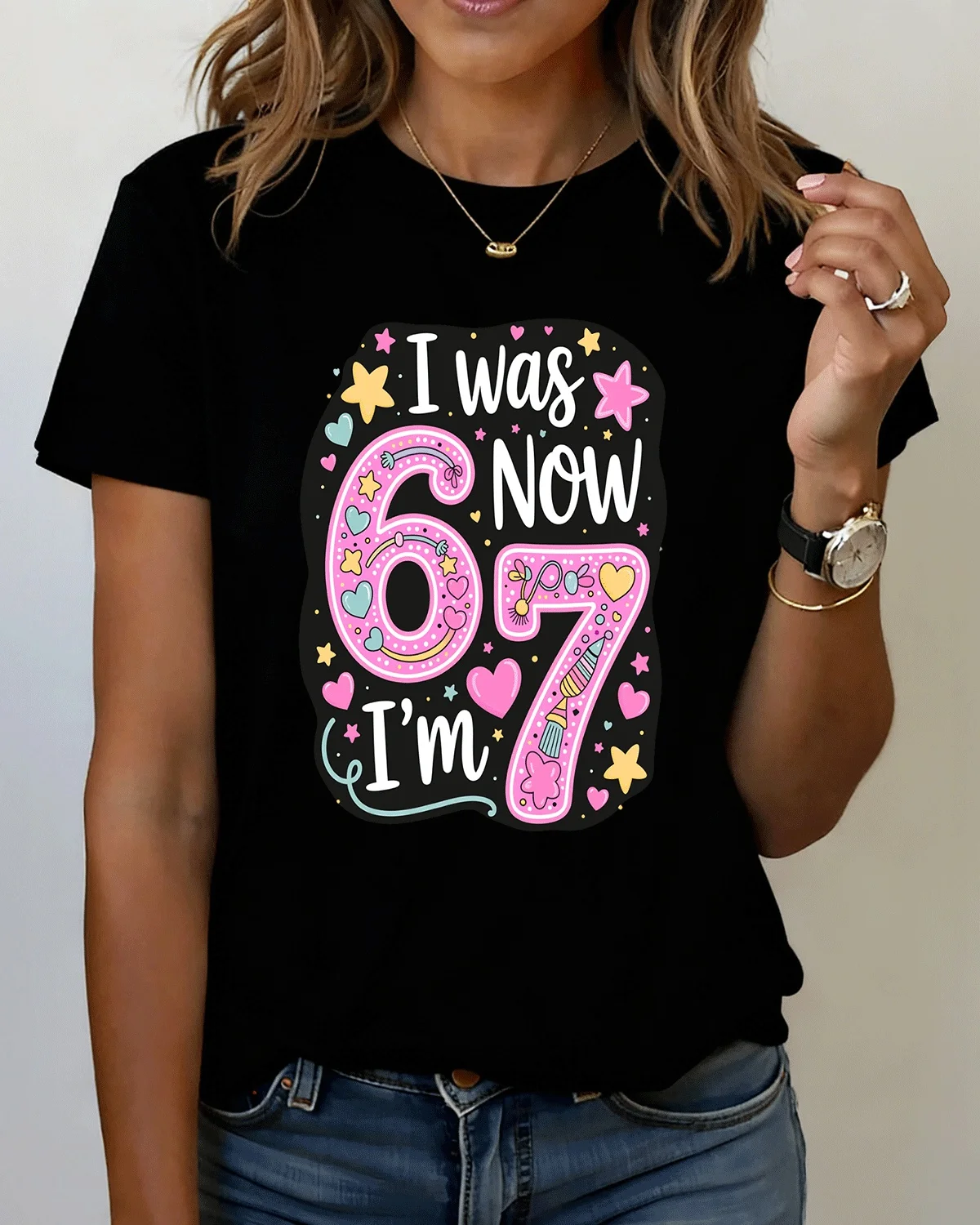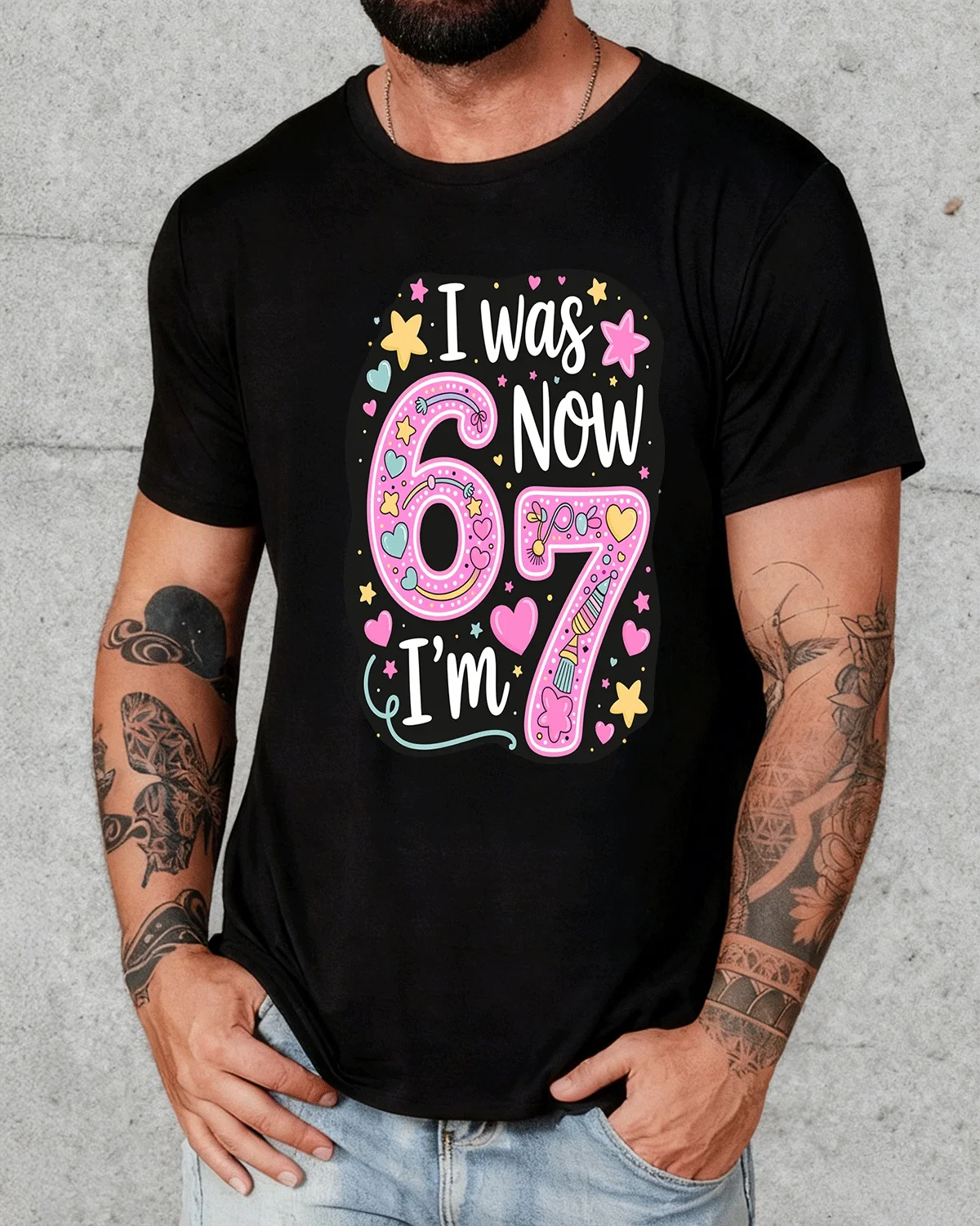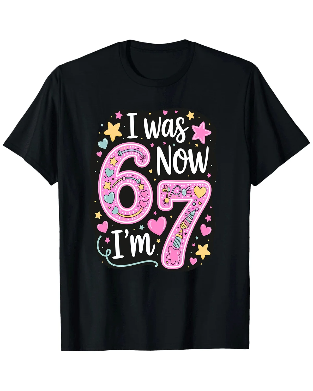 I Was 6 Now I'm 7 Birthday Summer Cotton Graphic T Shirt-Casual Funny,Short Sleeve,Soft Fabric,Comfortable Fit