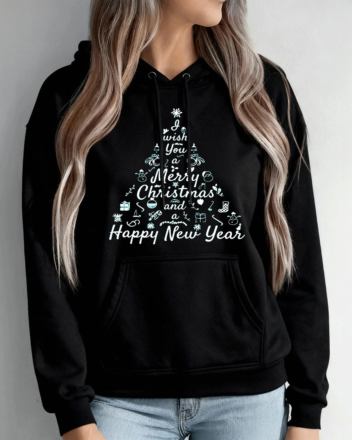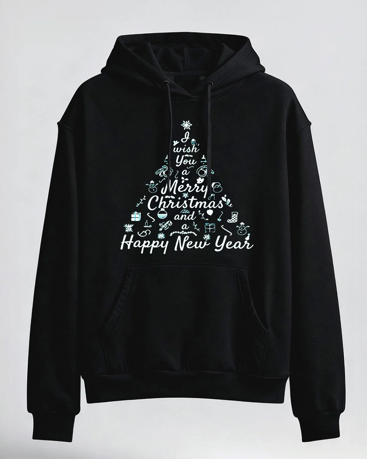I Wish You a Merry Christmas and Happy New Year Tree Cozy Graphic Hoodie for Men and Women - Casual Vintage, Long Sleeve, Soft Fabric, Comfortable Fit