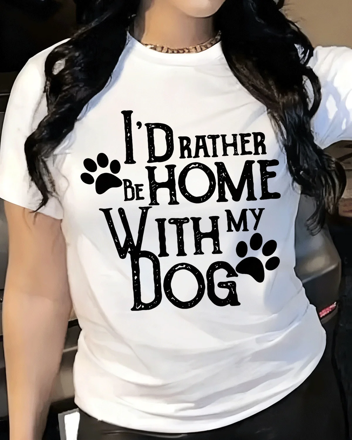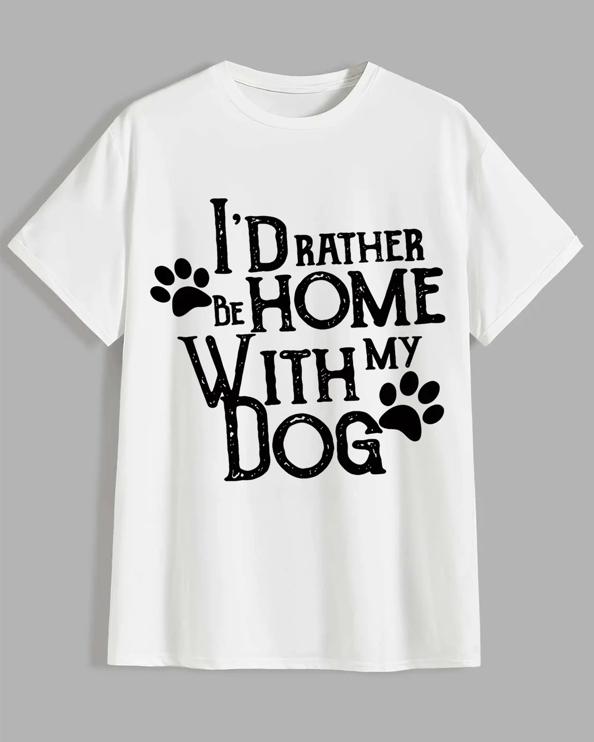 I'd Rather Be Home With My Dog Summer Cotton Graphic T Shirt-Casual Vintage,Short Sleeve,Soft Fabric,Comfortable Fit
