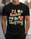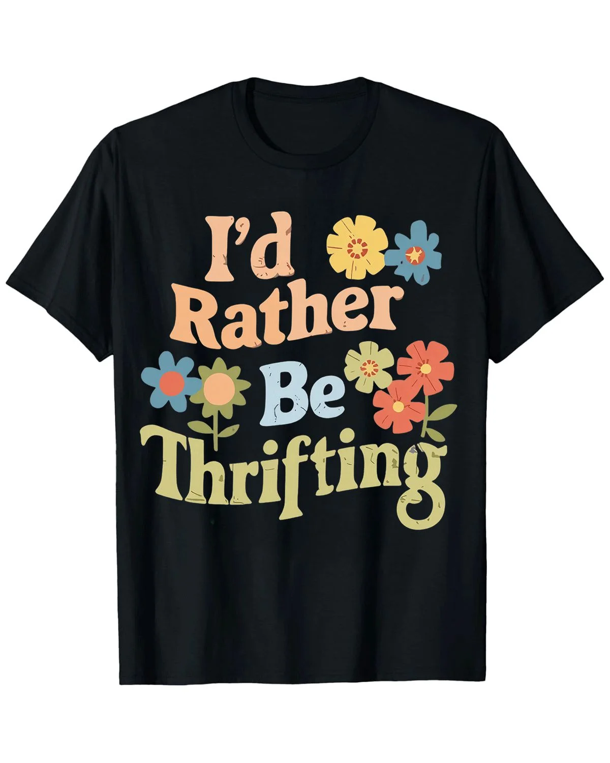 I'd Rather Be Thrifting Summer Cotton Graphic T Shirt - Vintage Retro, Short Sleeve, Soft Fabric, Comfortable Fit