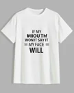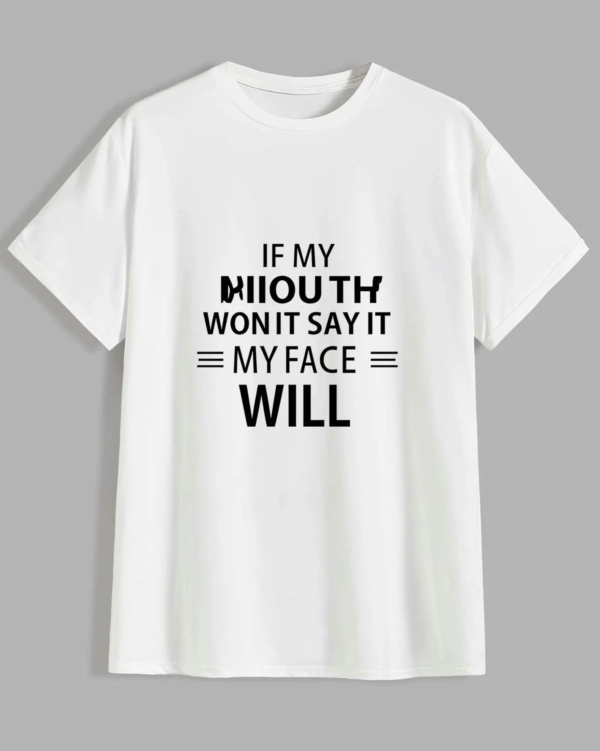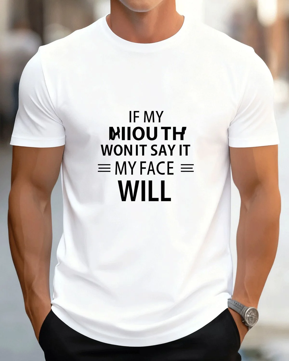 If My Mouth Won't Say It My Face Will Summer Cotton Graphic T Shirt - Casual Funny,Short Sleeve,Soft Fabric,Comfortable Fit