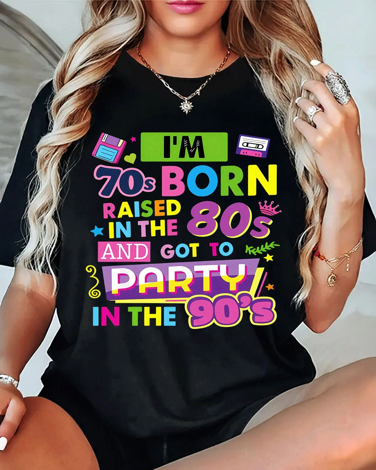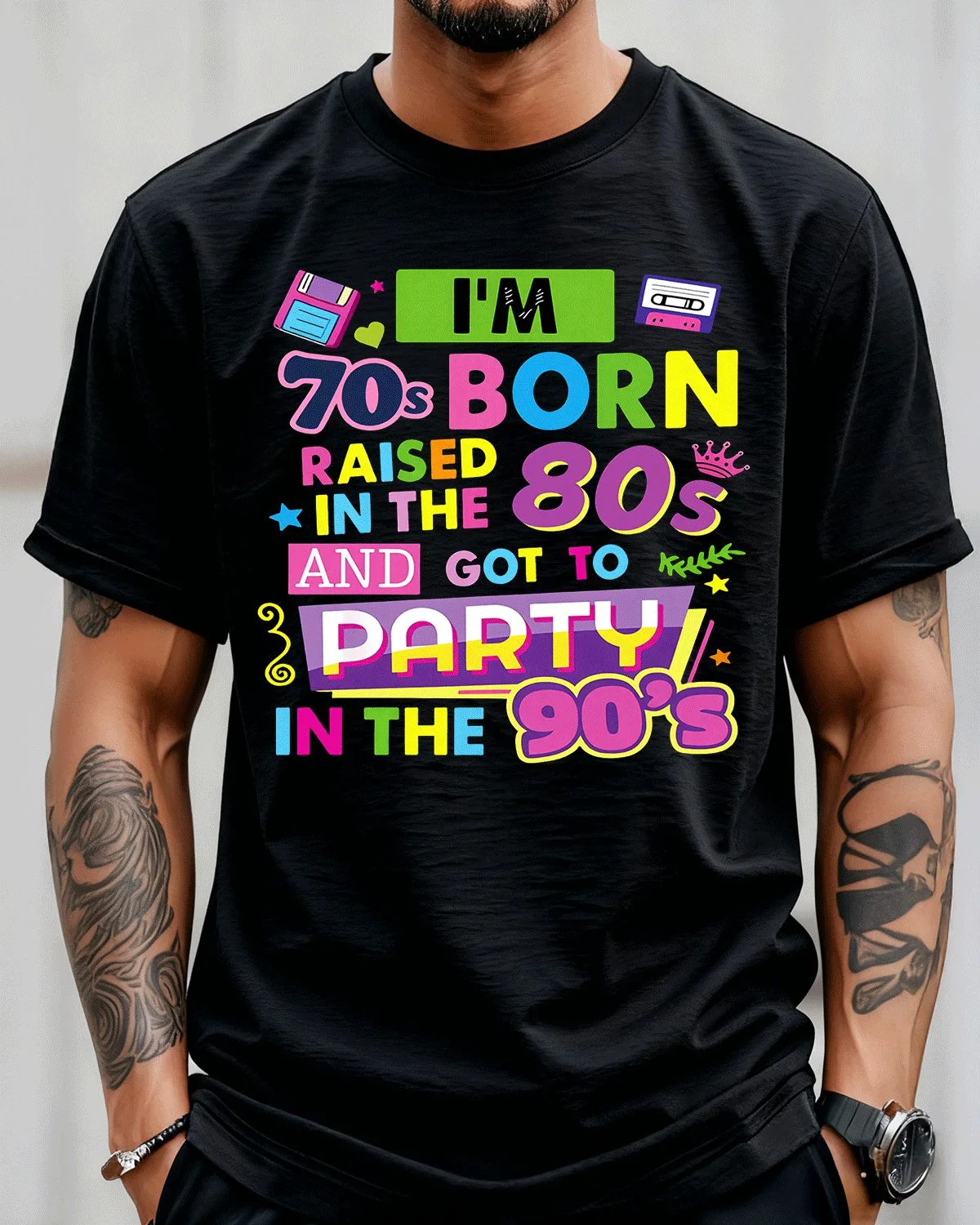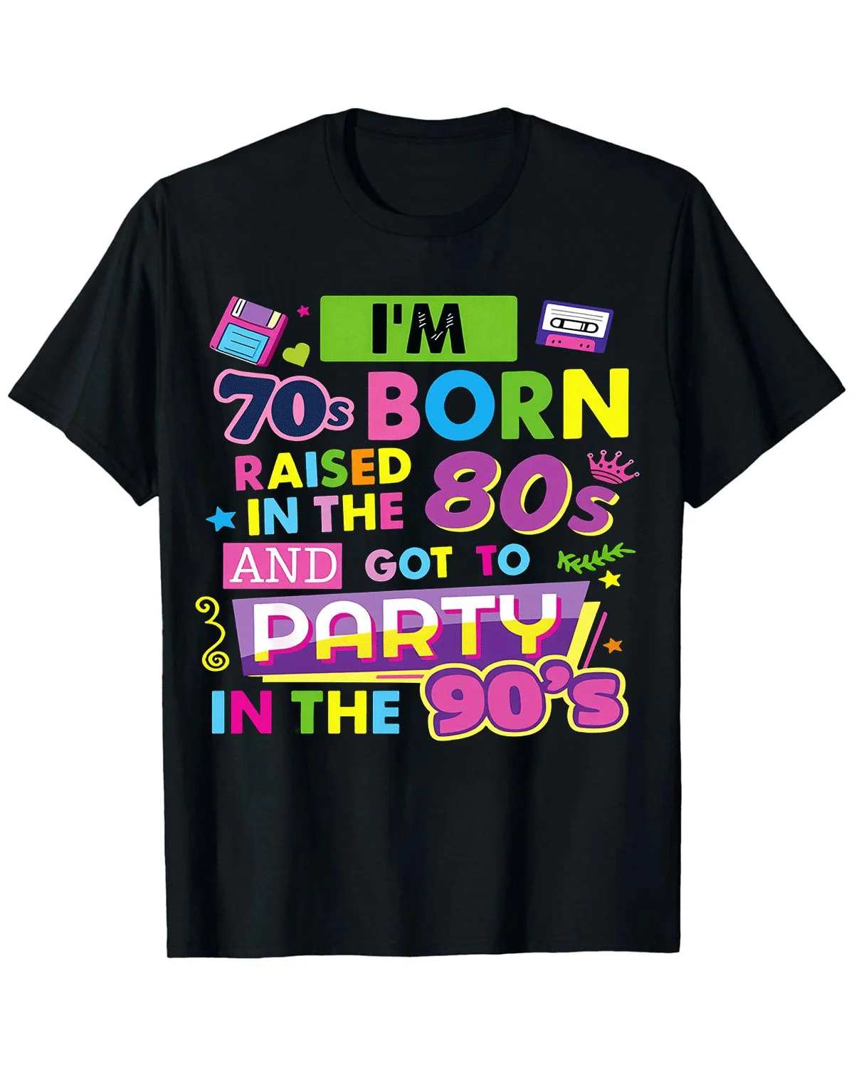 I'm 70s Born 80s Raised 90s Party Summer Cotton Graphic T Shirt - Retro Vintage, Short Sleeve, Soft Fabric, Comfortable Fit
