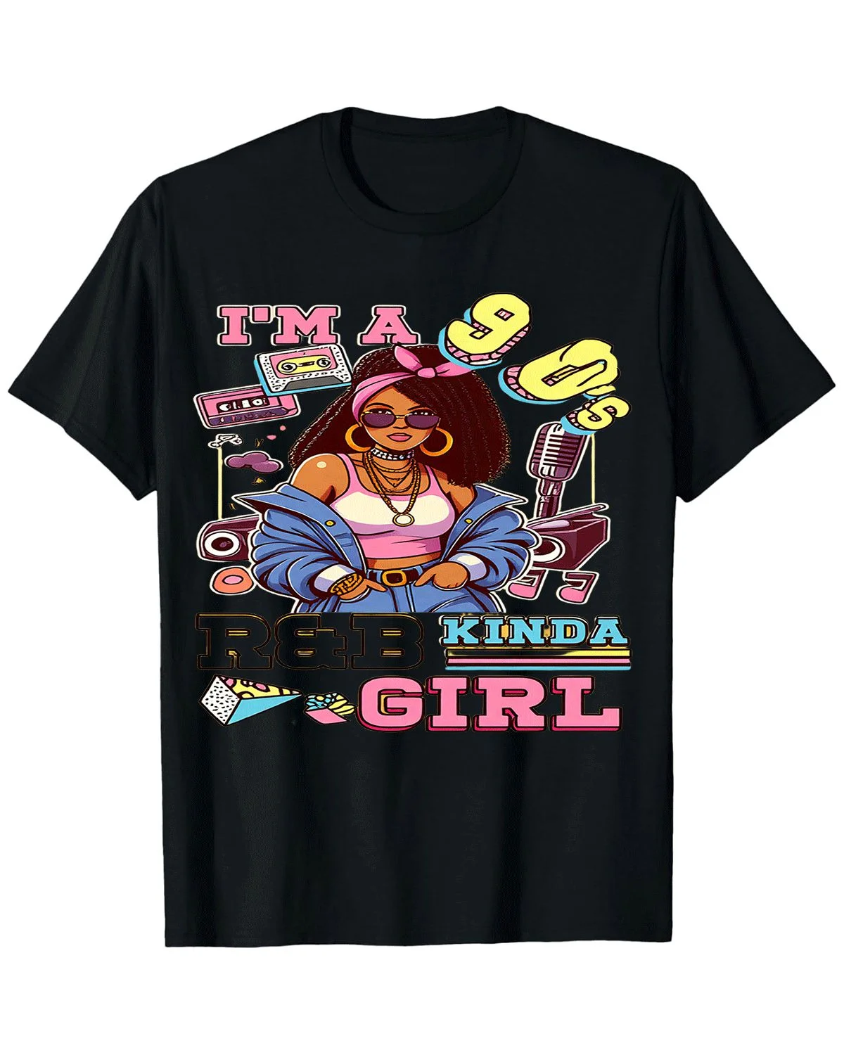 I'm a 90s R&B Kinda Girl Summer Cotton Graphic T Shirt - Retro Vintage, Short Sleeve, Soft Fabric, Comfortable Fit