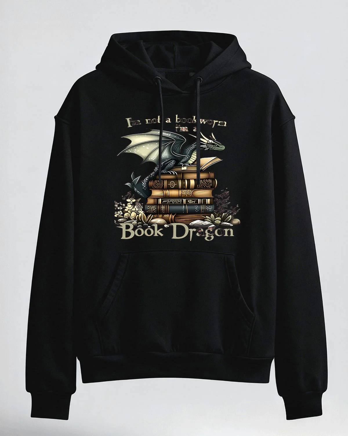 I'm Not a Bookworm I'm a Book Dragon Cozy Graphic Hoodie for Men and Women - Casual Vintage, Long Sleeve, Soft Fabric, Comfortable Fit