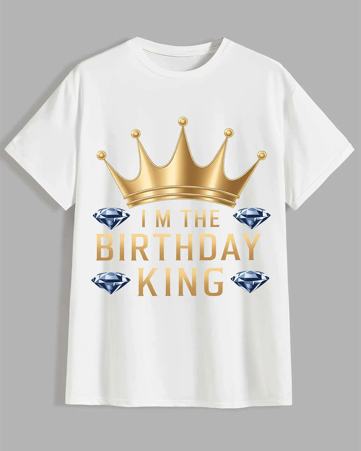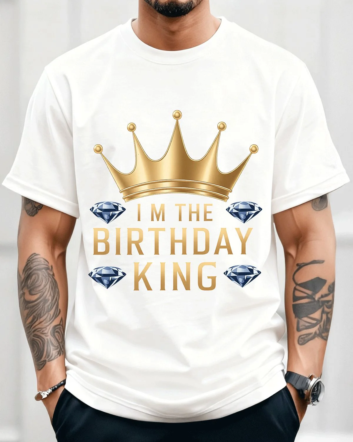 I'm the Birthday King Crown and Diamonds Summer Cotton Graphic T Shirt - Casual Cool, Short Sleeve, Soft Fabric, Comfortable Fit