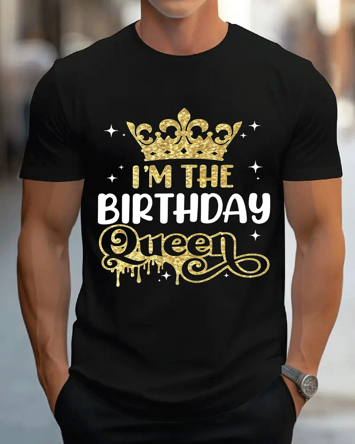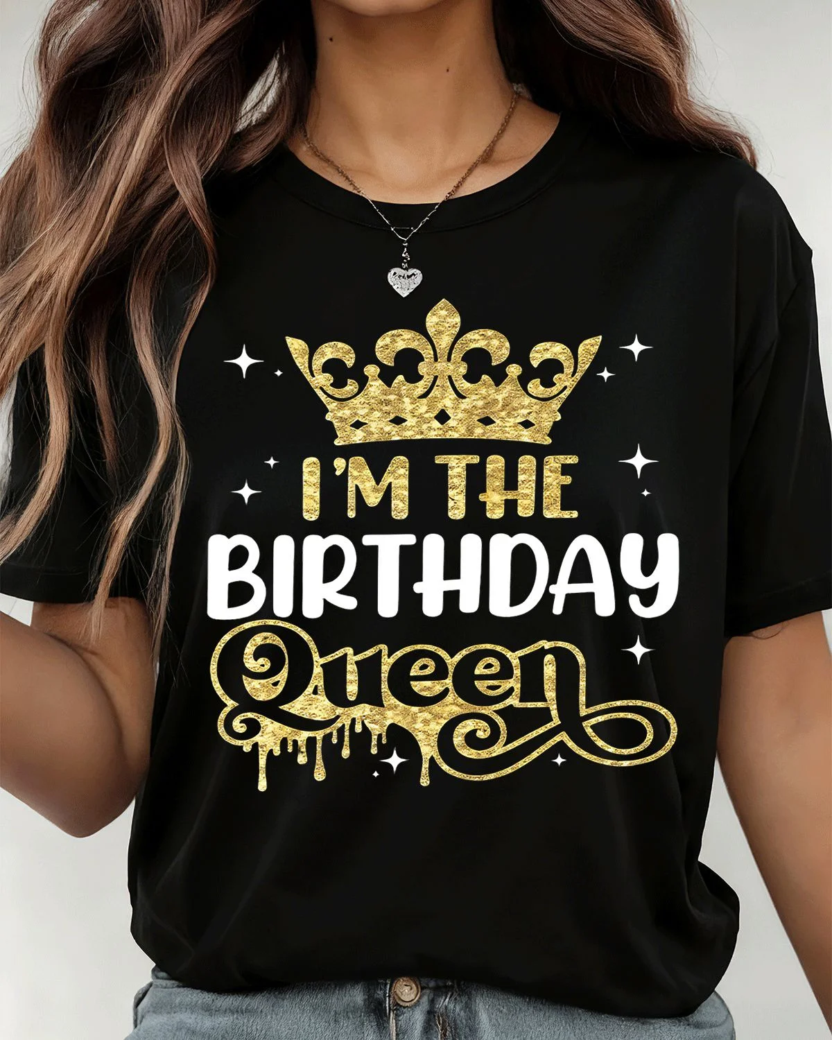 I'm the Birthday Queen Gold Crown Summer Cotton Graphic T Shirt - Casual Chic, Short Sleeve, Soft Fabric, Comfortable Fit