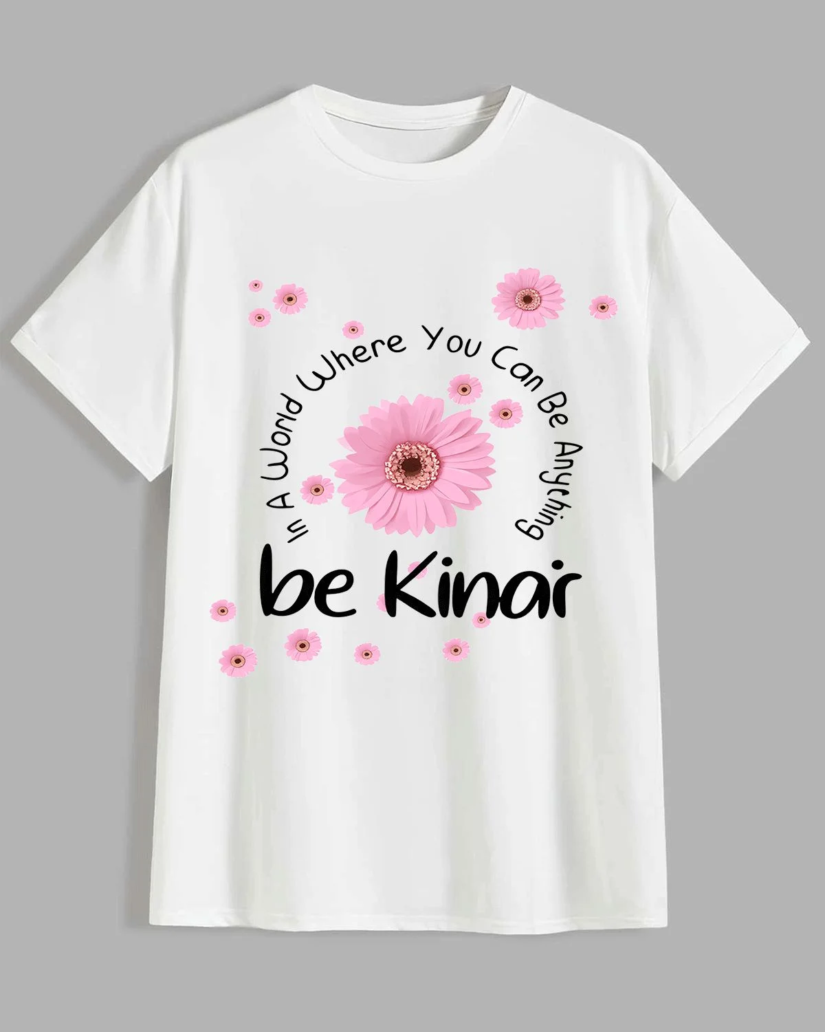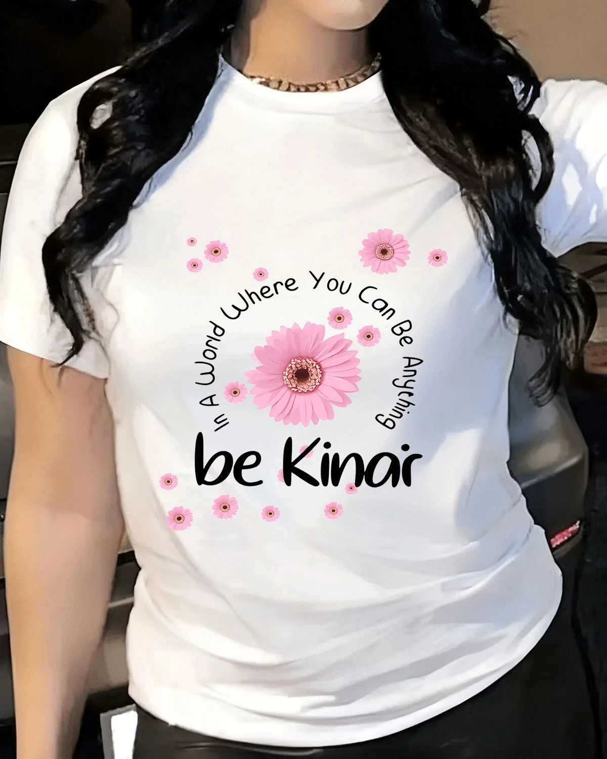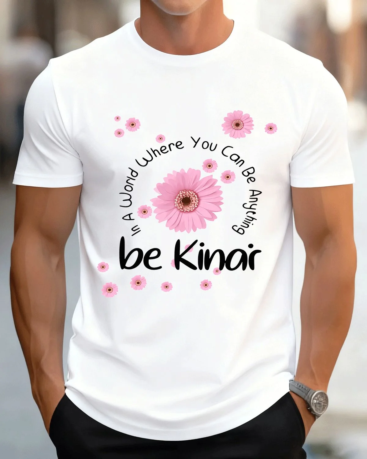 In A World Where You Can Be Anything Be Kind Pink Daisy Summer Cotton Graphic T Shirt - Casual Chic, Short Sleeve, Soft Fabric, Comfortable Fit
