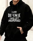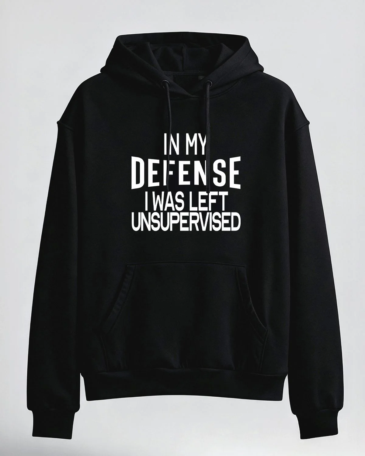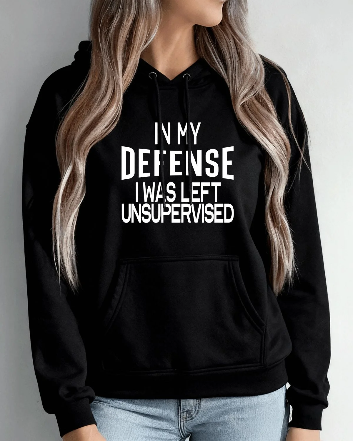 In My Defense I Was Left Unsupervised Cozy Cotton Graphic Hoodie with Pocket-Funny Casual,Long Sleeve,Soft Fabric,Comfortable Fit