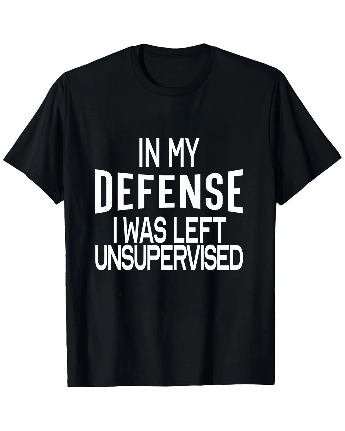 In My Defense I Was Left Unsupervised Summer Cotton Graphic T Shirt - Funny Casual,Short Sleeve,Soft Fabric,Comfortable Fit