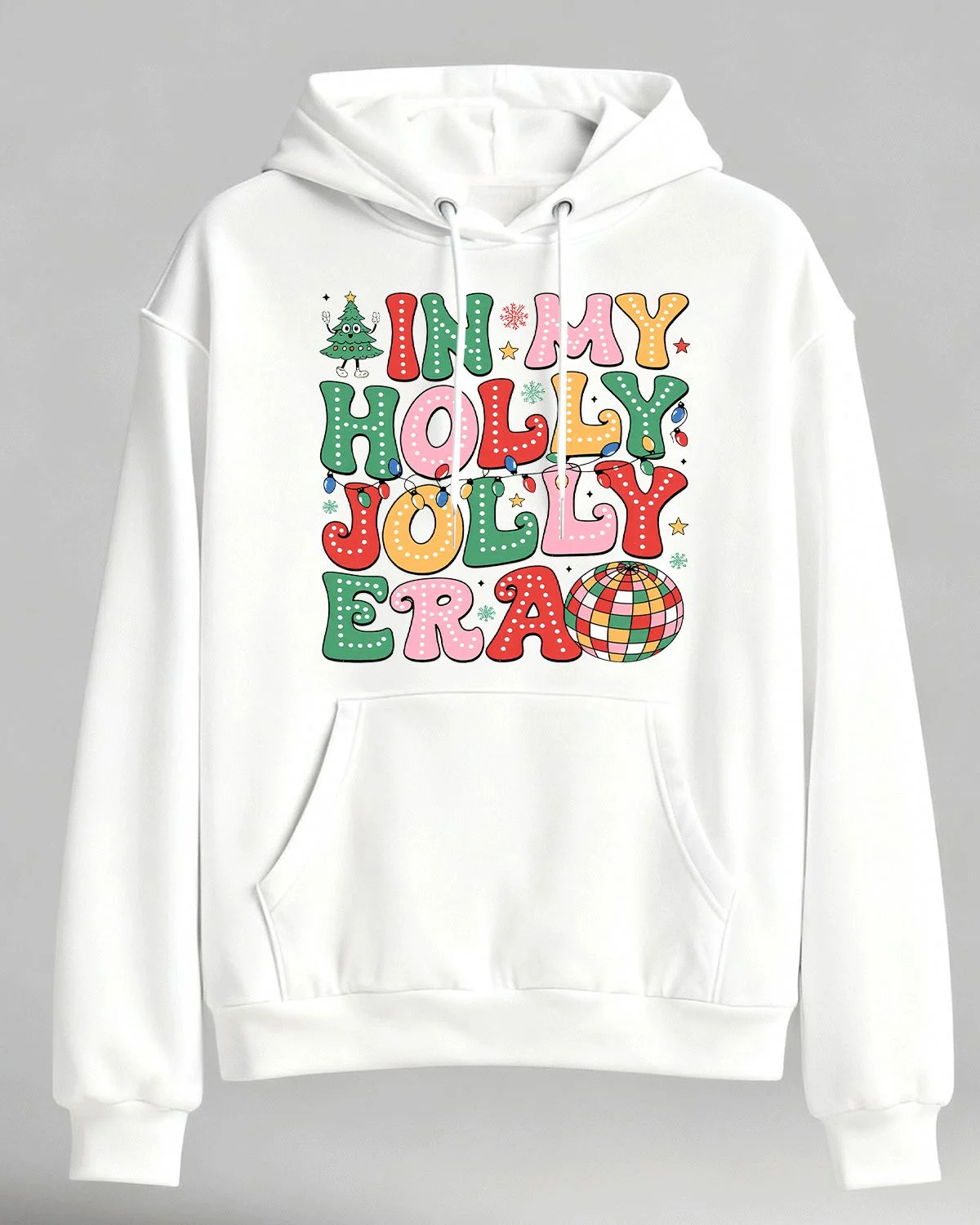 In My Holly Jolly Christmas Era Cozy Graphic Hoodie for Men and Women - Casual Retro, Long Sleeve, Soft Fabric, Comfortable Fit