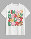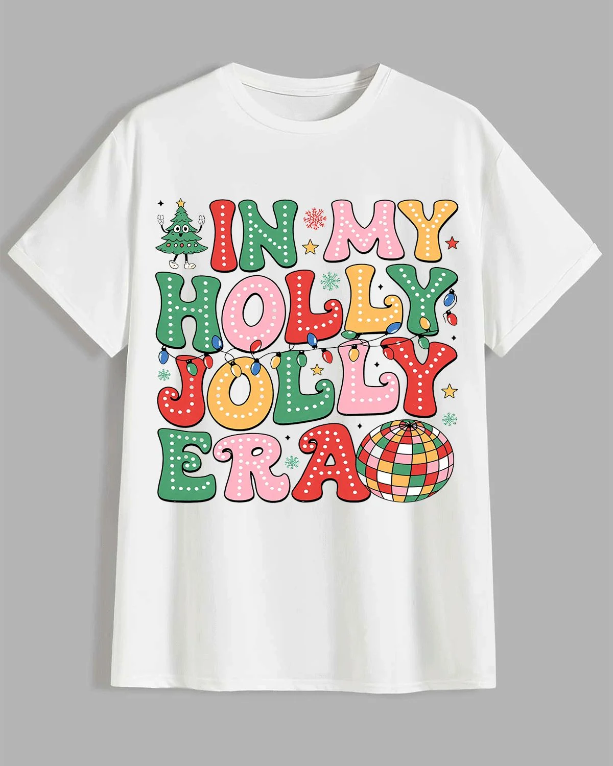 In My Holly Jolly Christmas Era Summer Cotton Graphic T Shirt - Casual Retro, Short Sleeve, Soft Fabric, Comfortable Fit