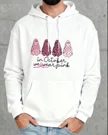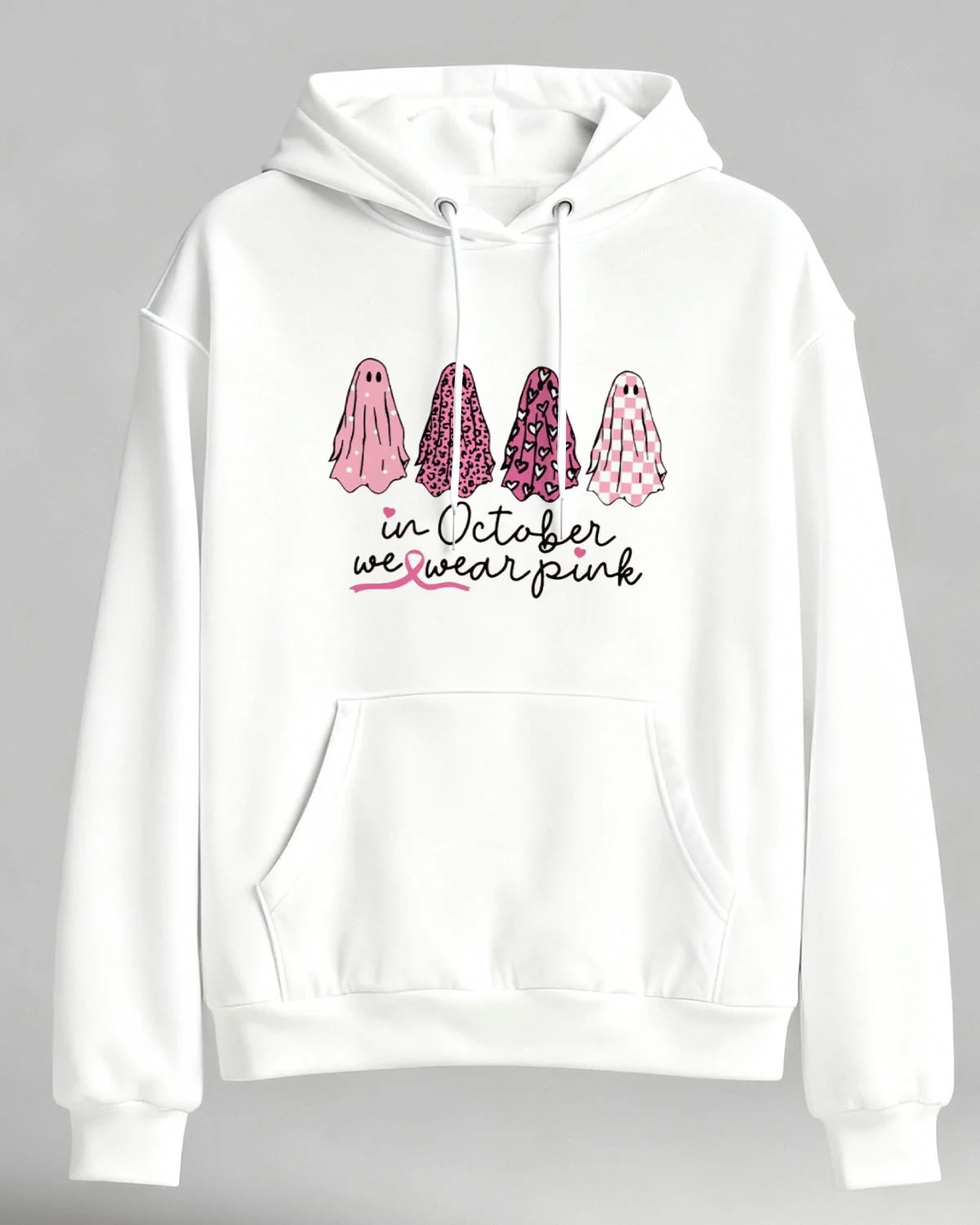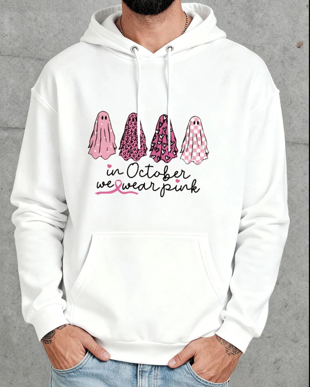 In October We Wear Pink Ghosts Cozy Cotton Graphic Hoodie with Pocket-Casual Trendy,Long Sleeve,Soft Fabric,Comfortable Fit