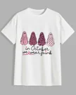 Christmas Chickens and Reindeer in Santa Hats Summer Cotton Graphic T Shirt - Funny Retro, Short Sleeve, Soft Fabric, Comfortable Fit
