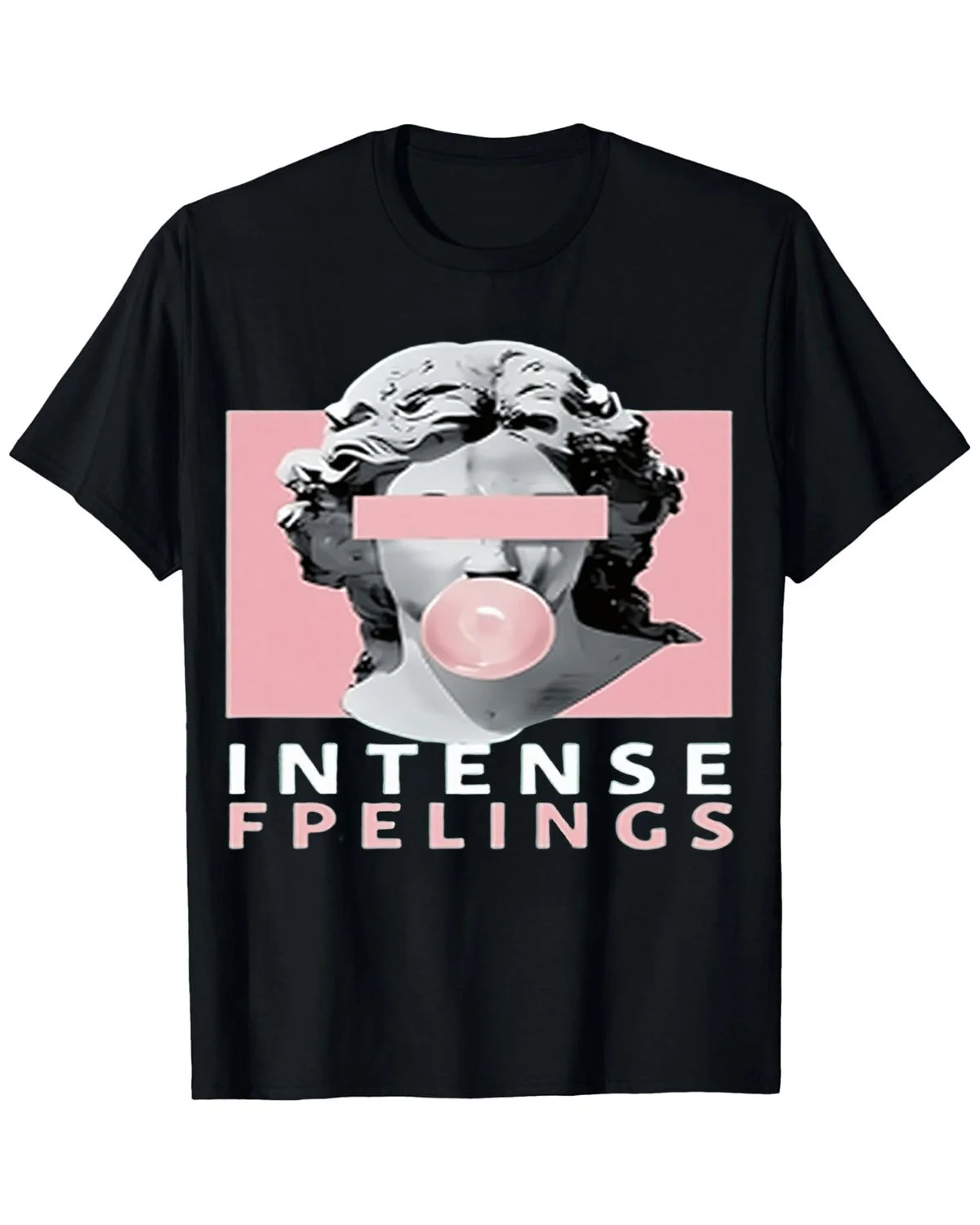 Intense Feelings Bubblegum Sculpture Summer Cotton Graphic T Shirt - Artistic Retro, Short Sleeve, Soft Fabric, Comfortable Fit