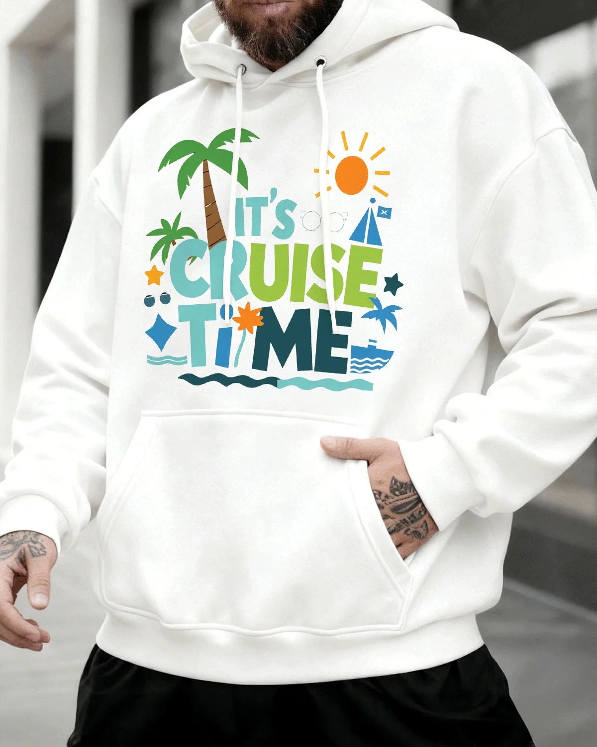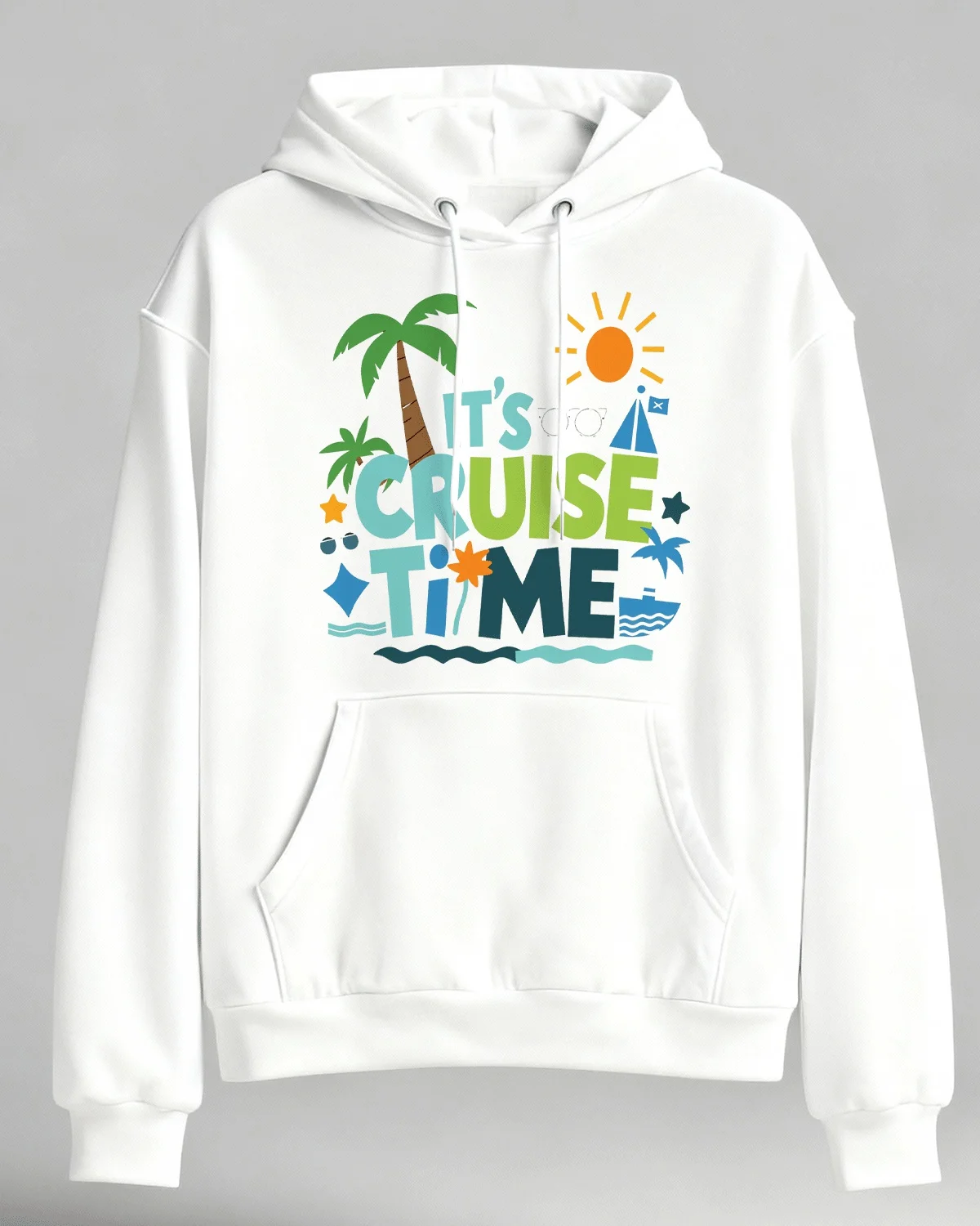 It's Cruise Time Cozy Cotton Graphic Hoodie-Casual Cool,Long Sleeves,Soft Fabric,Comfortable Fit
