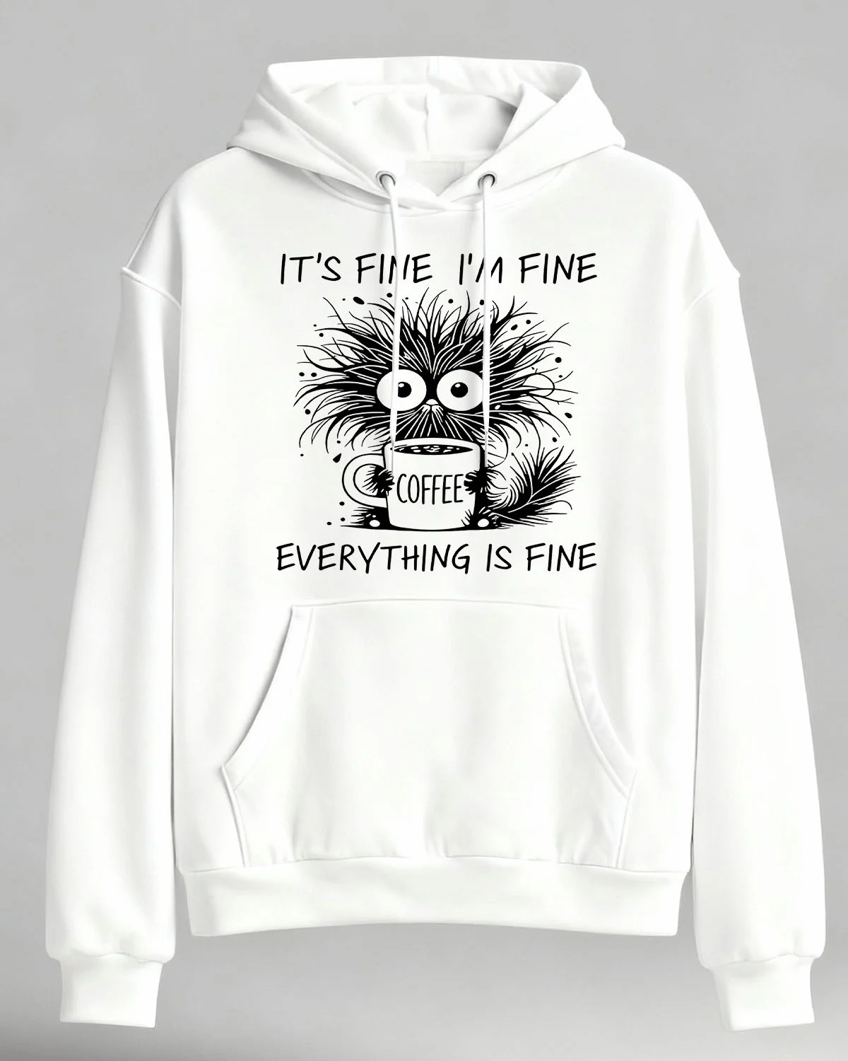 It's Fine I'm Fine Coffee Lover Cozy Graphic Hoodie for Men and Women - Casual Funny, Long Sleeve, Soft Fabric, Comfortable Fit