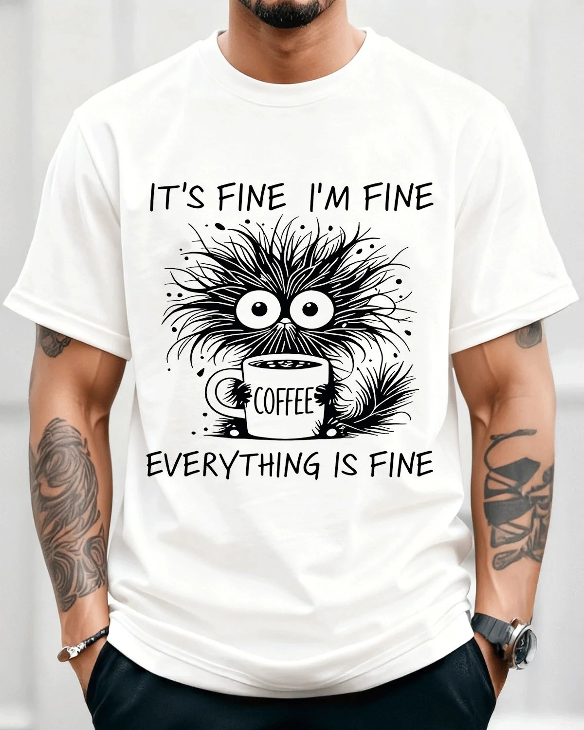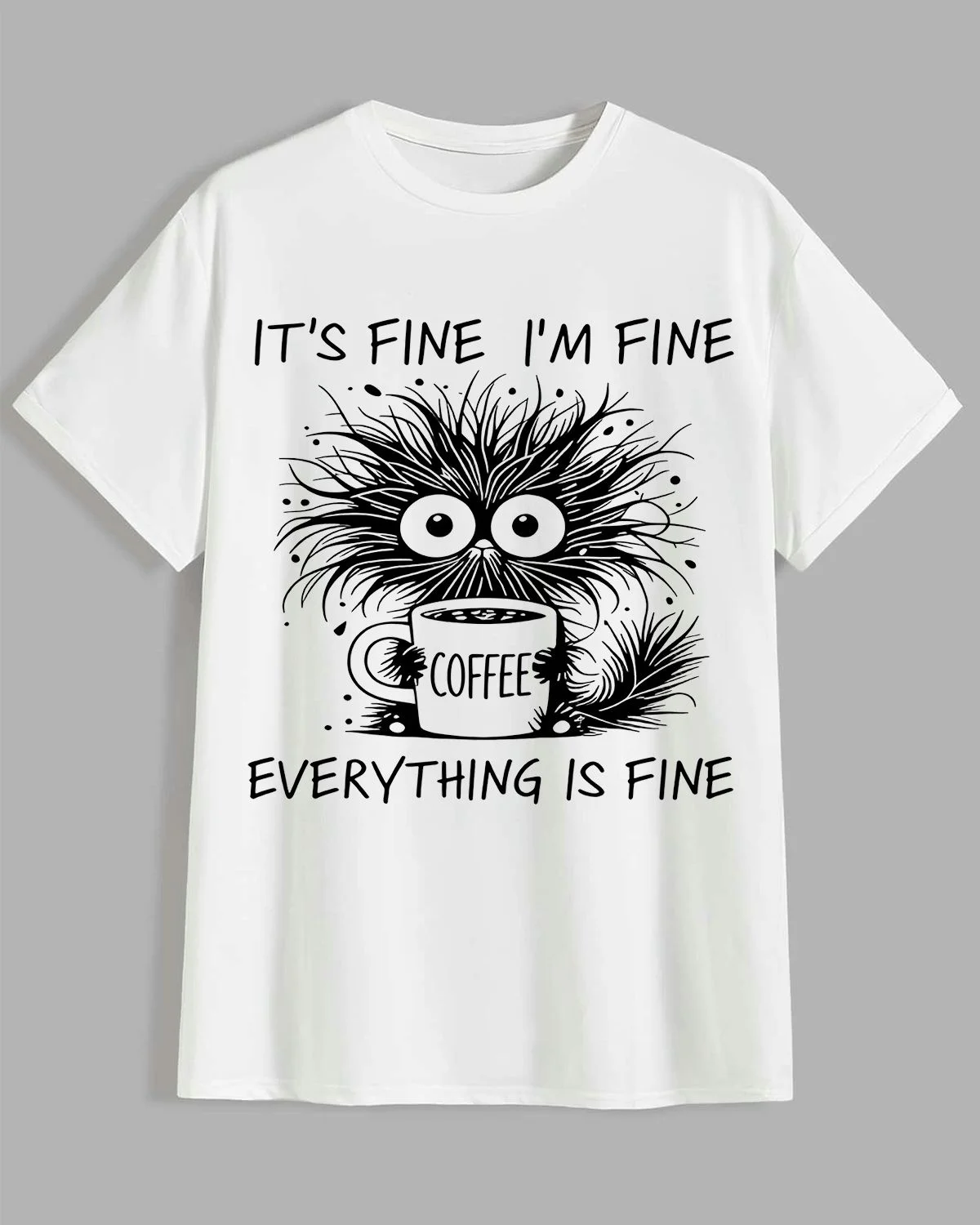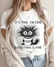 It's Fine I'm Fine Coffee Lover Summer Cotton Graphic T Shirt - Casual Funny, Short Sleeve, Soft Fabric, Comfortable Fit