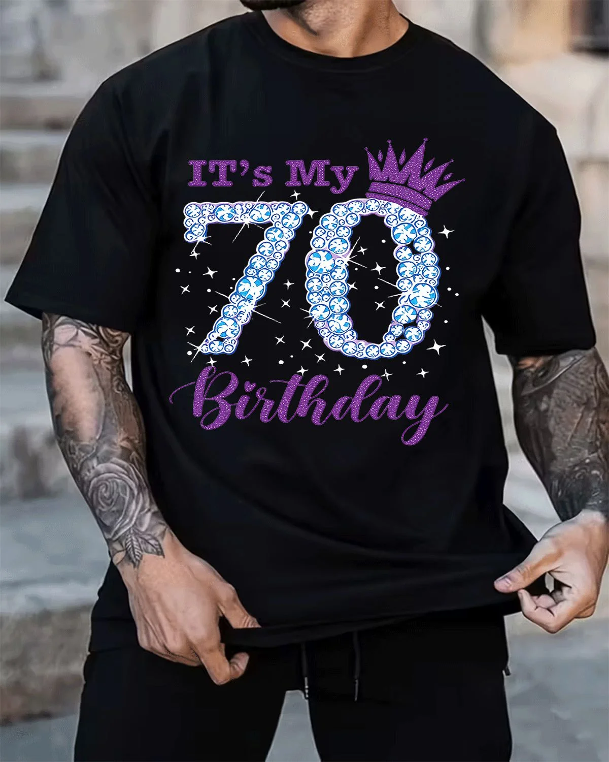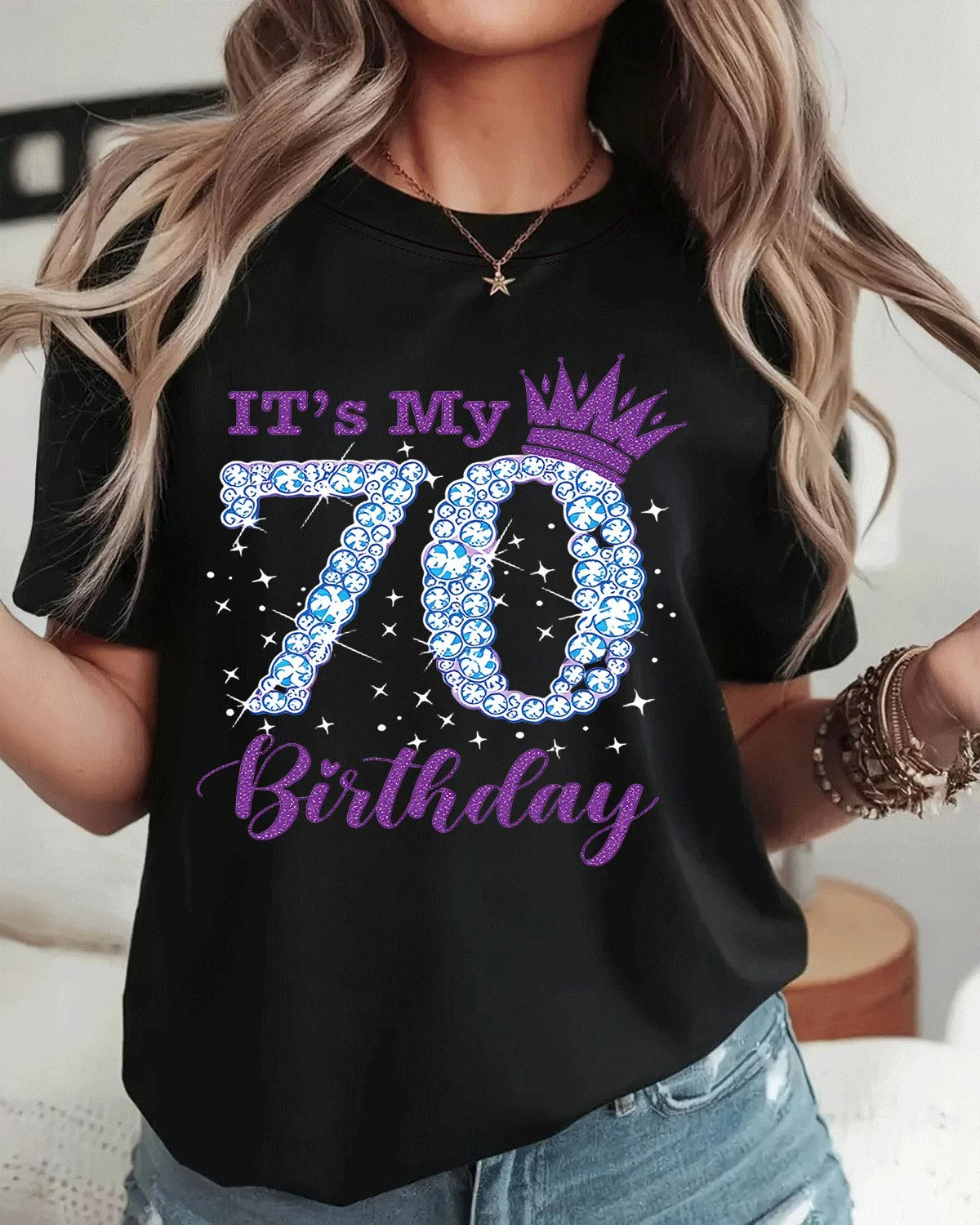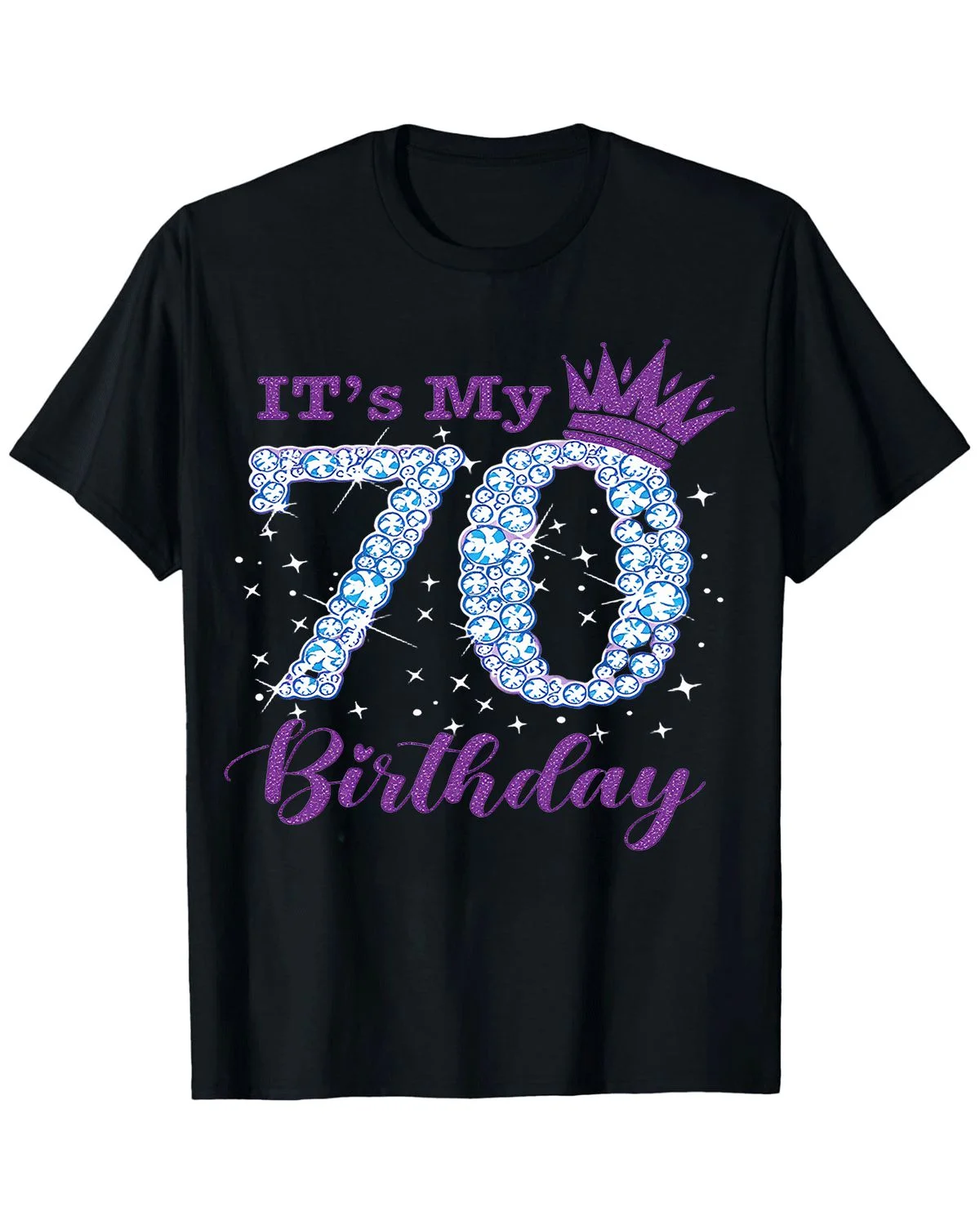 It's My 70 Birthday Mom Summer Cotton Graphic T Shirt - Casual Vintage, Short Sleeve, Soft Fabric, Comfortable Fit