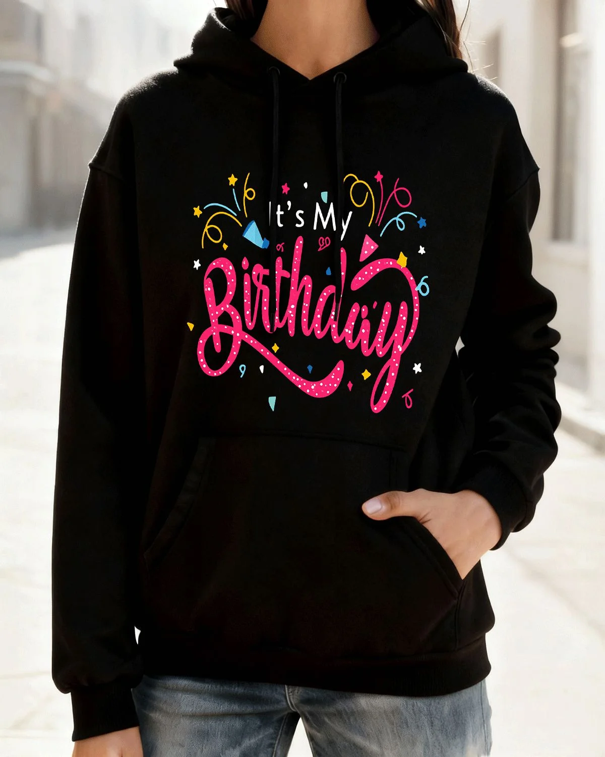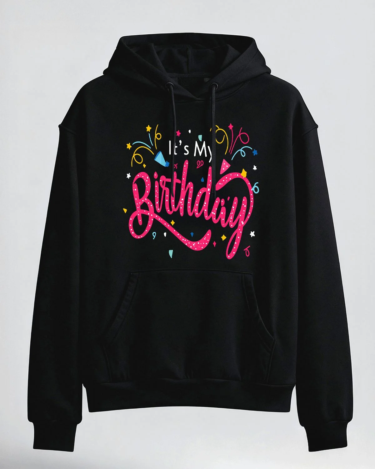 It's My Birthday Confetti Cozy Graphic Hoodie for Men and Women - Casual Fun, Long Sleeve, Soft Fabric, Comfortable Fit