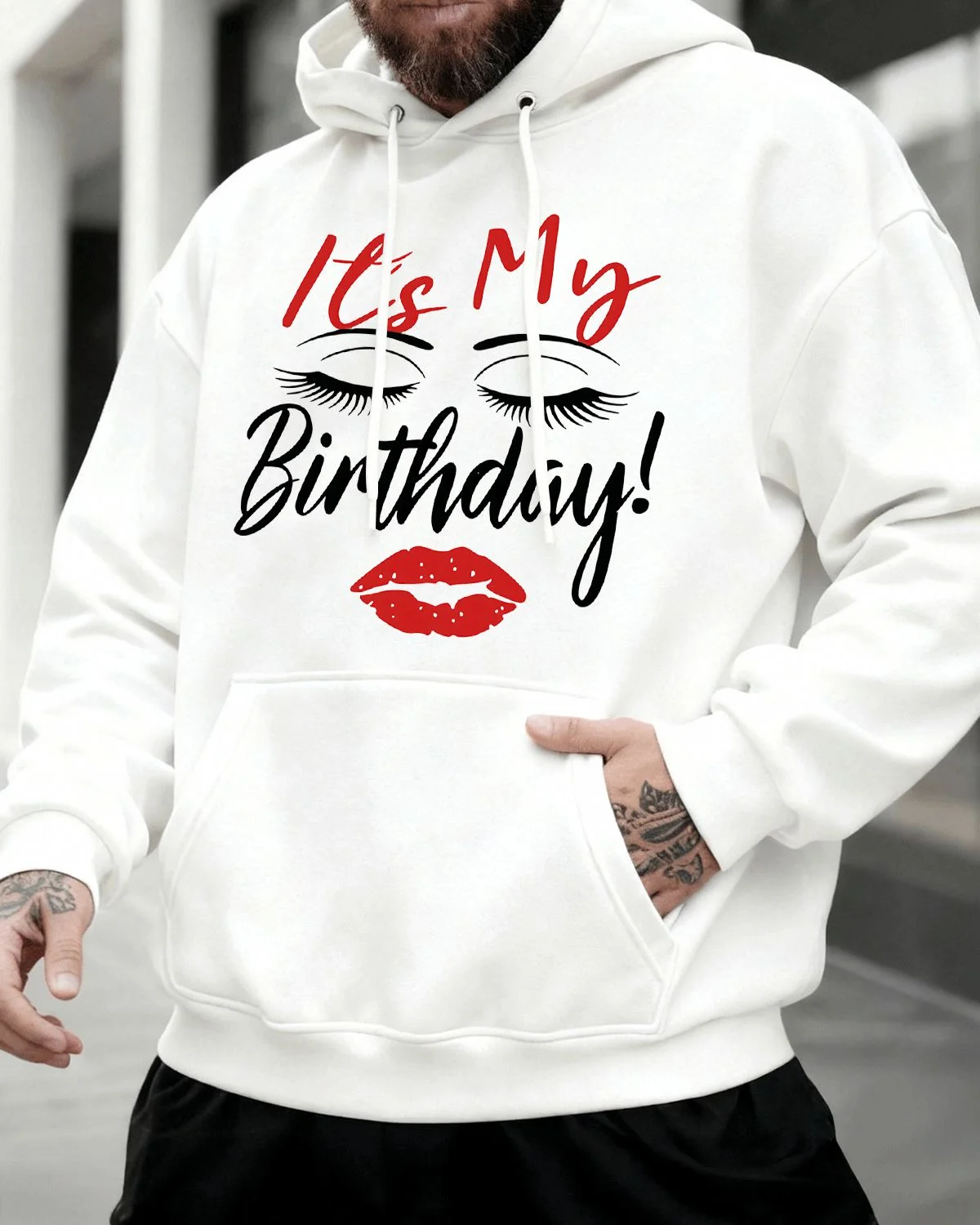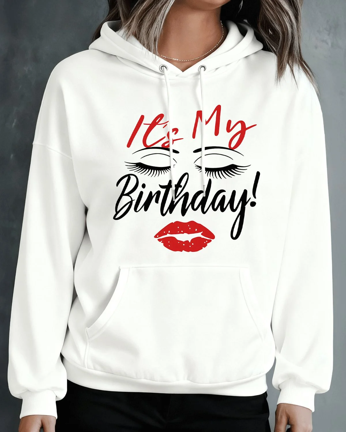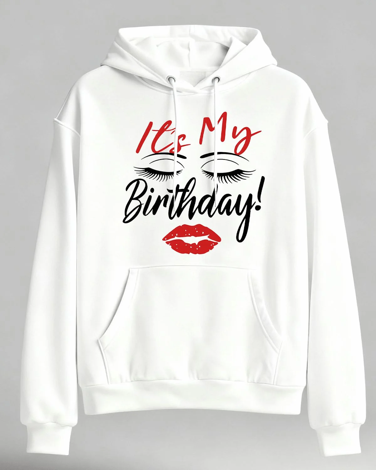 It's My Birthday Eyelashes and Lips Cozy Graphic Hoodie for Men and Women - Casual Chic, Long Sleeve, Soft Fabric, Comfortable Fit